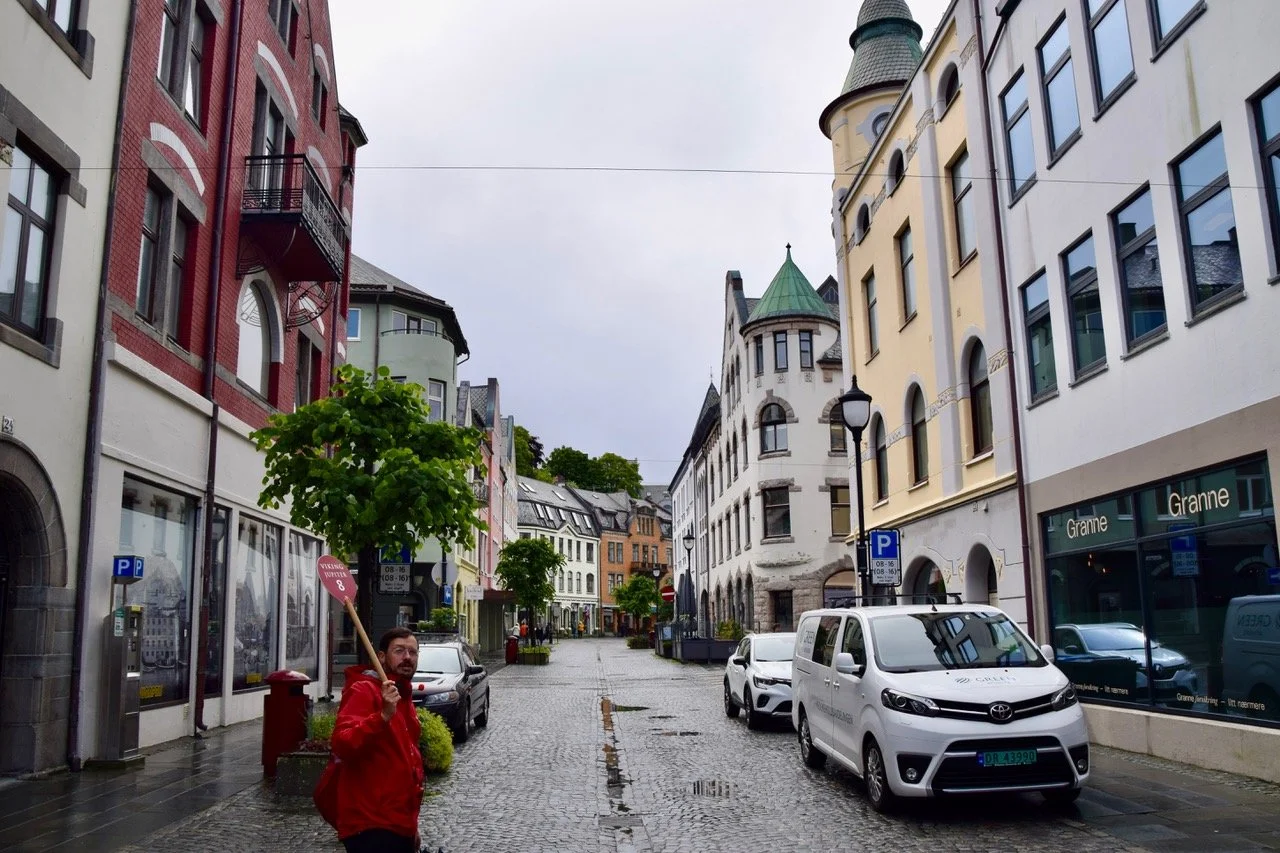 Whatevs. The dock was mere steps away from the city centre, so yay. Ålesund has been called the prettiest city in Norway and it’s easy to see why. They kinda cheated, though… the whole town burned down in 1904 and got rebuilt all at once in a coordinated architectural style, so there wasn’t any mix-n-match architecture going on. It’s pretty easy to make the town look nice when the whole thing is planned as a unit.