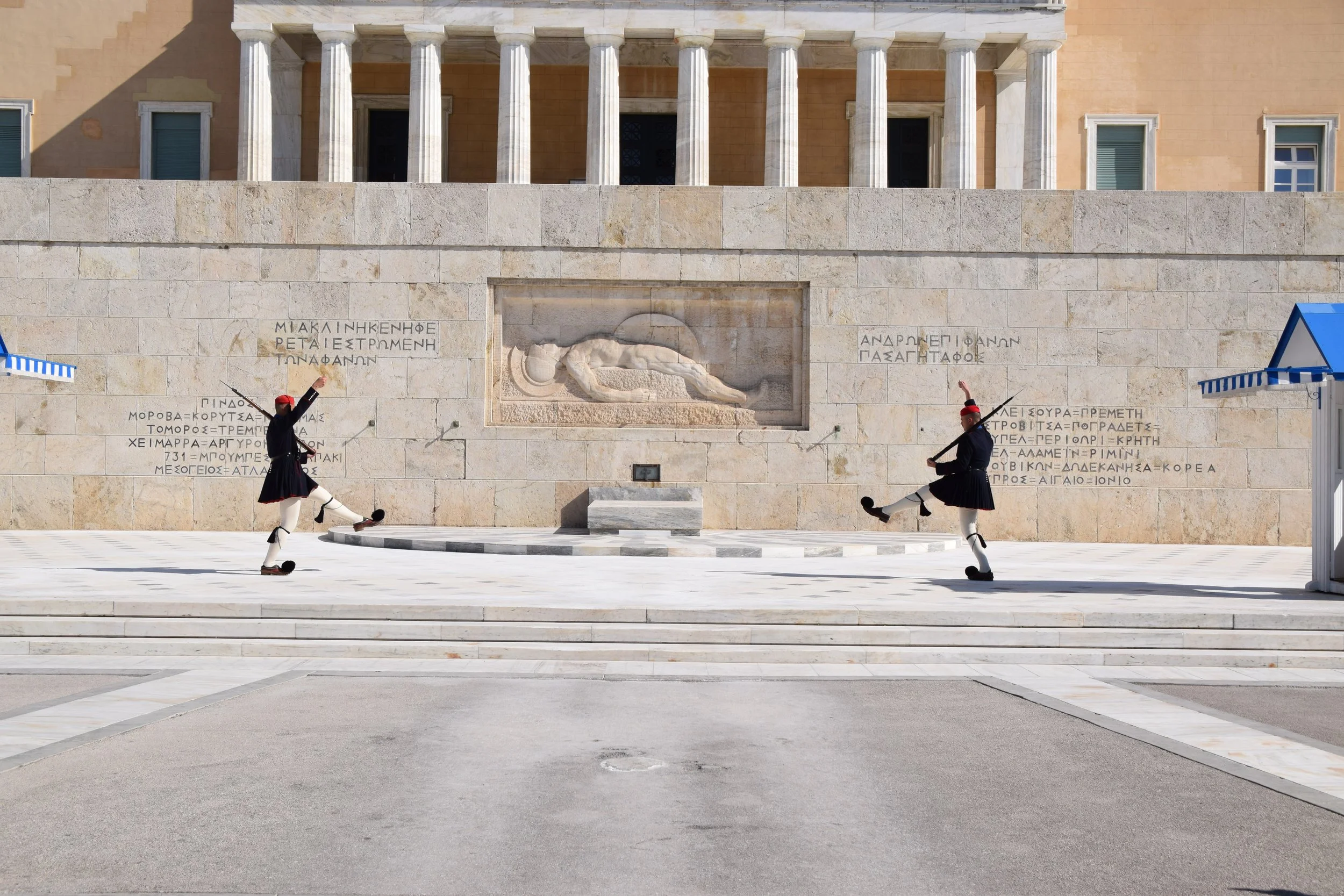 Once we were dropped off at Syntagma Square, we did a quick look-see through the Polo store and then headed over to the Parliament building and watched the changing of the guards at the Monument to the Unknown Soldier.