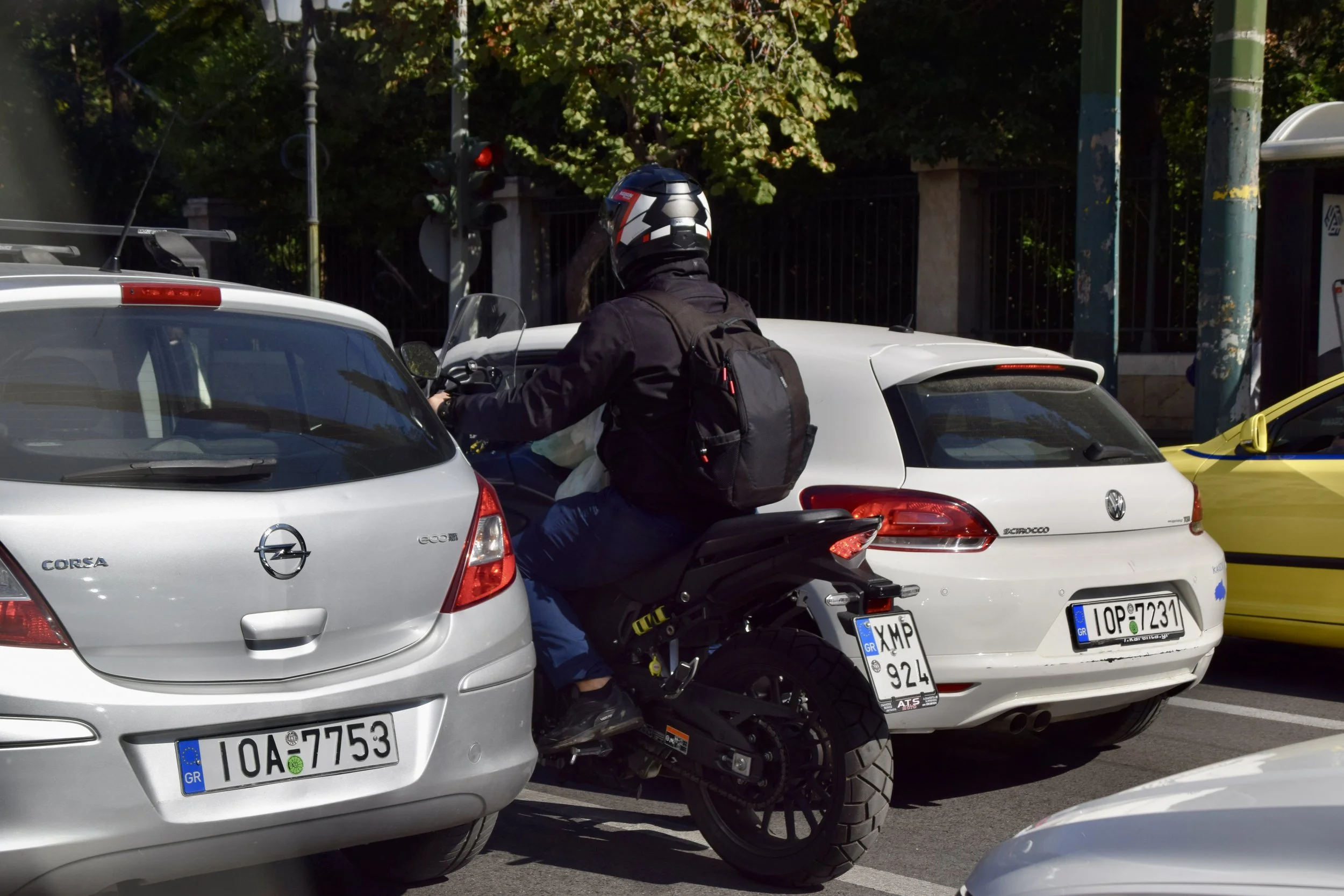 On the afternoon of our second day in Athens, with my head and neck still sore from the pummelling I took on my new Least Favourite Steel Coaster Of All Time, we headed back to the city centre for a bit more sightseeing. Since the hotel shuttle bus doesn’t run on weekends, we hopped an Uber taxi and off we went. I mentioned how crazy Athenian traffic is and a good reason for it is lane splitting is allowed here. That’s where scooters, motorcycles, and such are allowed to create their own lanes of traffic between the vehicles in the regular lanes. It’s just a reality here that a 4-lane road for cars is a 7-lane road for things on two wheels.