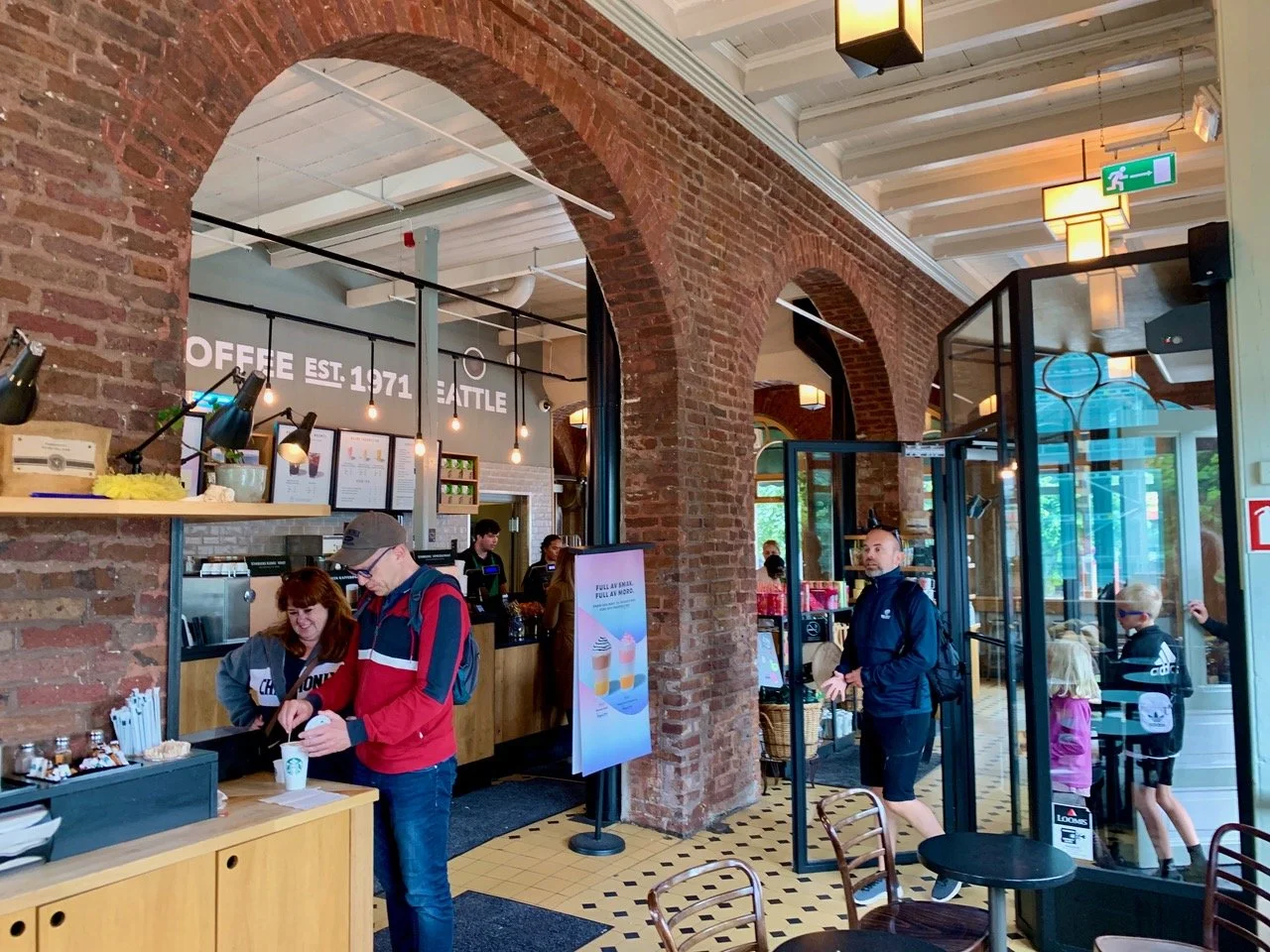 Mickey-D’s isn’t the only US chain setting up shop in old buildings. Across the street from it is one of the neatest Starbucks I’ve ever seen.