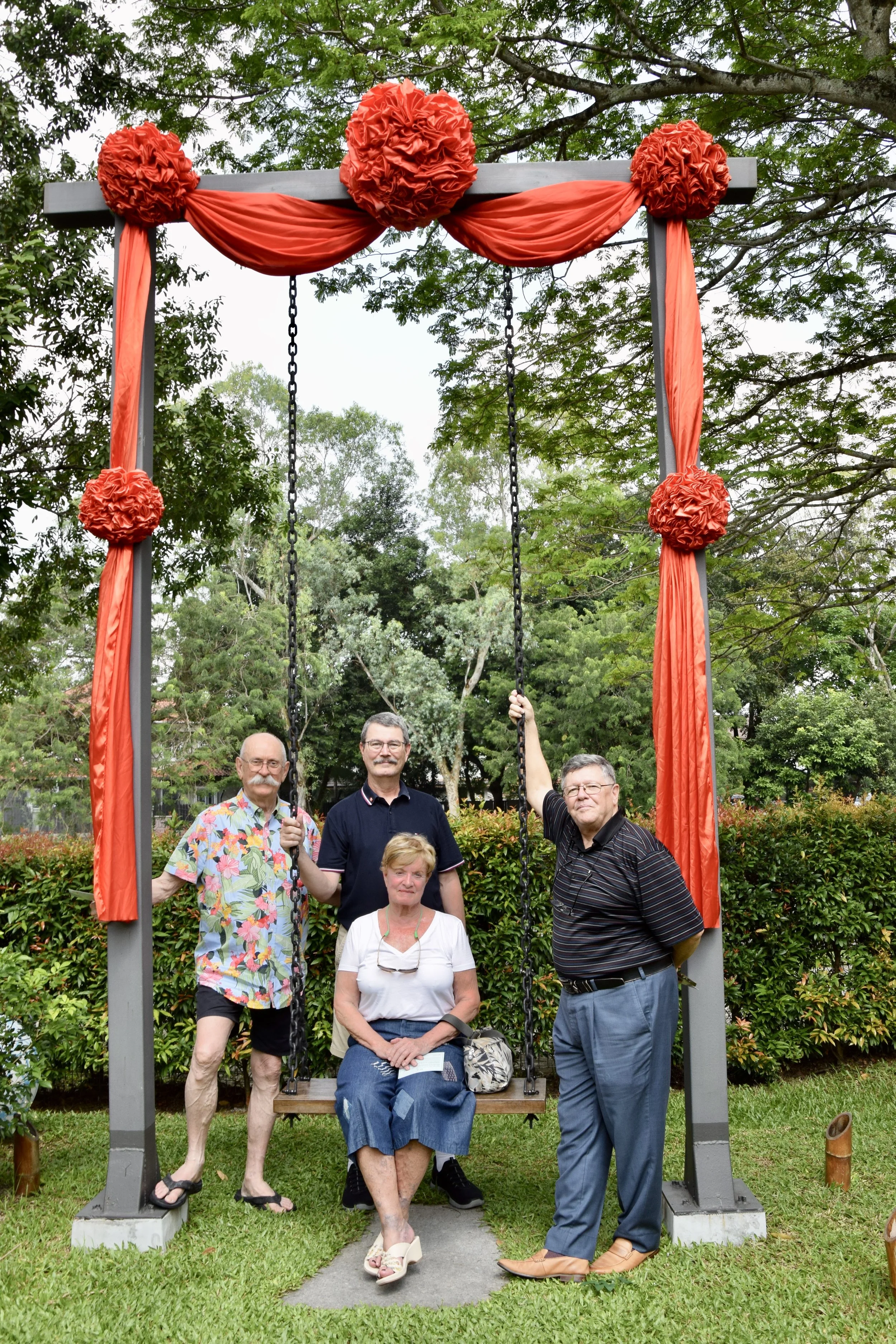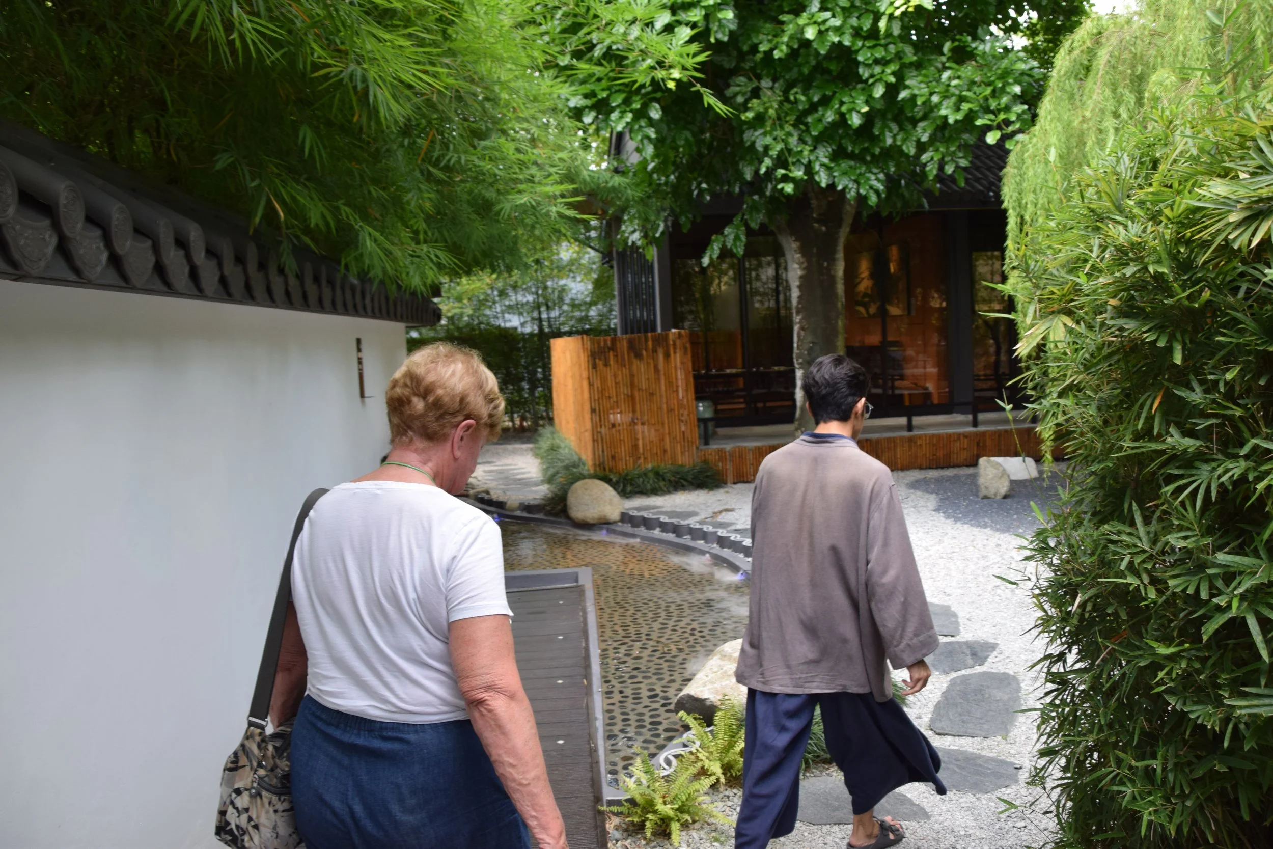 I found it to be a surprisingly emotional experience. Before long, we were in a garden with decorative balls, zen gardens, and a nice lawn. The host suggested we all pose for a photo. I thought the swing would be a good spot.