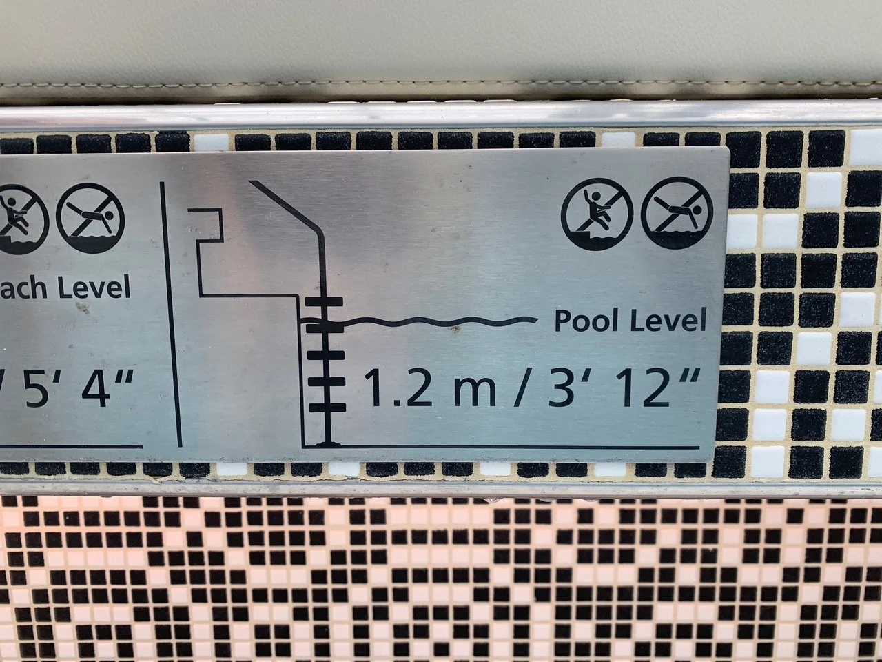 I had to laugh at the signage on the edge of the pool, though. When a company who only deals with metric measurements tries to include imperial measurements for the Americans, sometimes it can get lost in translation.