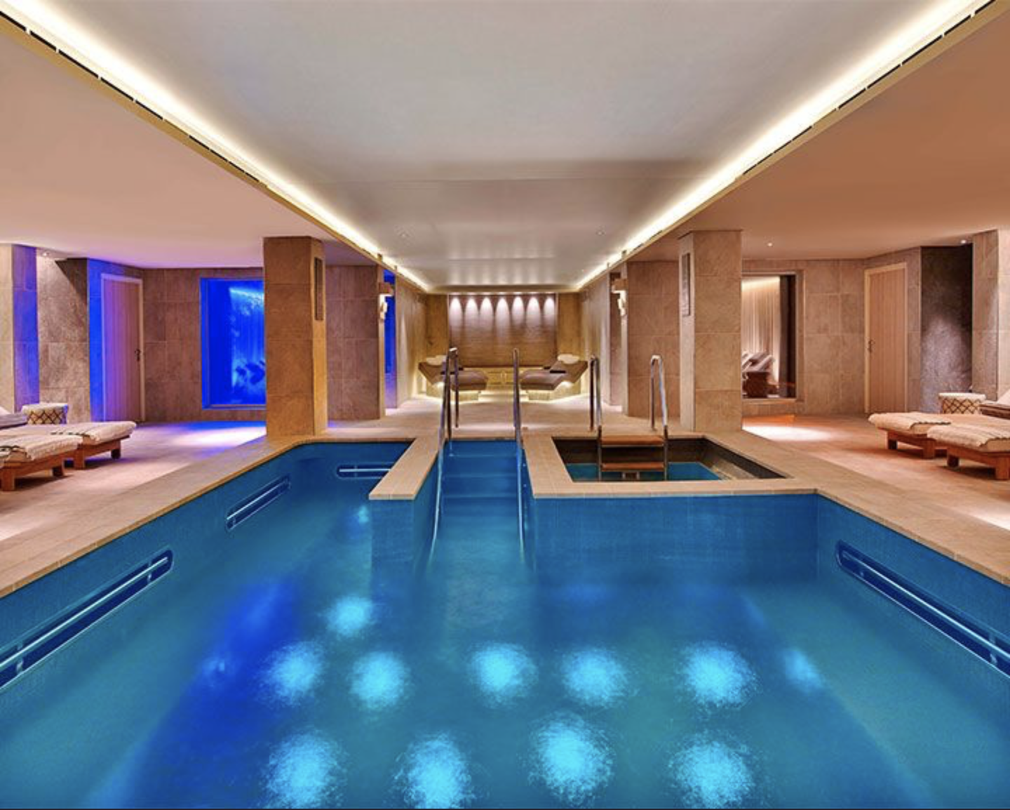 This main area also includes a steam room, snow grotto (basically a closet with a bench and snow), and two showers: the ‘experience shower’ where you get a rain head and multiple other shower heads hitting you from all sides and a bucket shower, which you’re supposed to do after the steam room. You step into the shower while you’re still steamy, pull the lever, and a bucket of ice cold water pours onto you.
