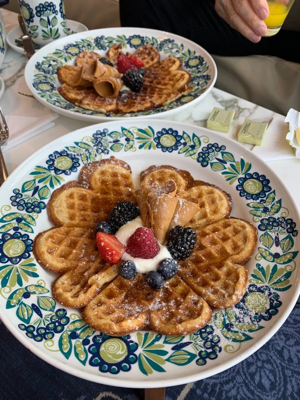 Anyway, we headed for the Explorer’s lounge at the front of the ship for brekkie today because Rob wanted Norwegian pancakes.