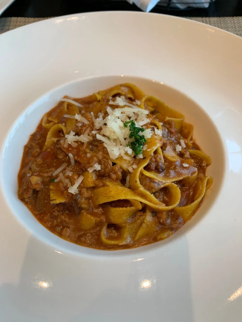 We both started with calamari, which was really nice, then Rob had a soup and I had the pasta special as the second course. It was fettuccini and some kind of meat sauce - I didn’t catch half of what the waiter described (accent + mask) so I really don’t know what I ate, but it was a riot of flavours and I sopped up every last bit of it.
