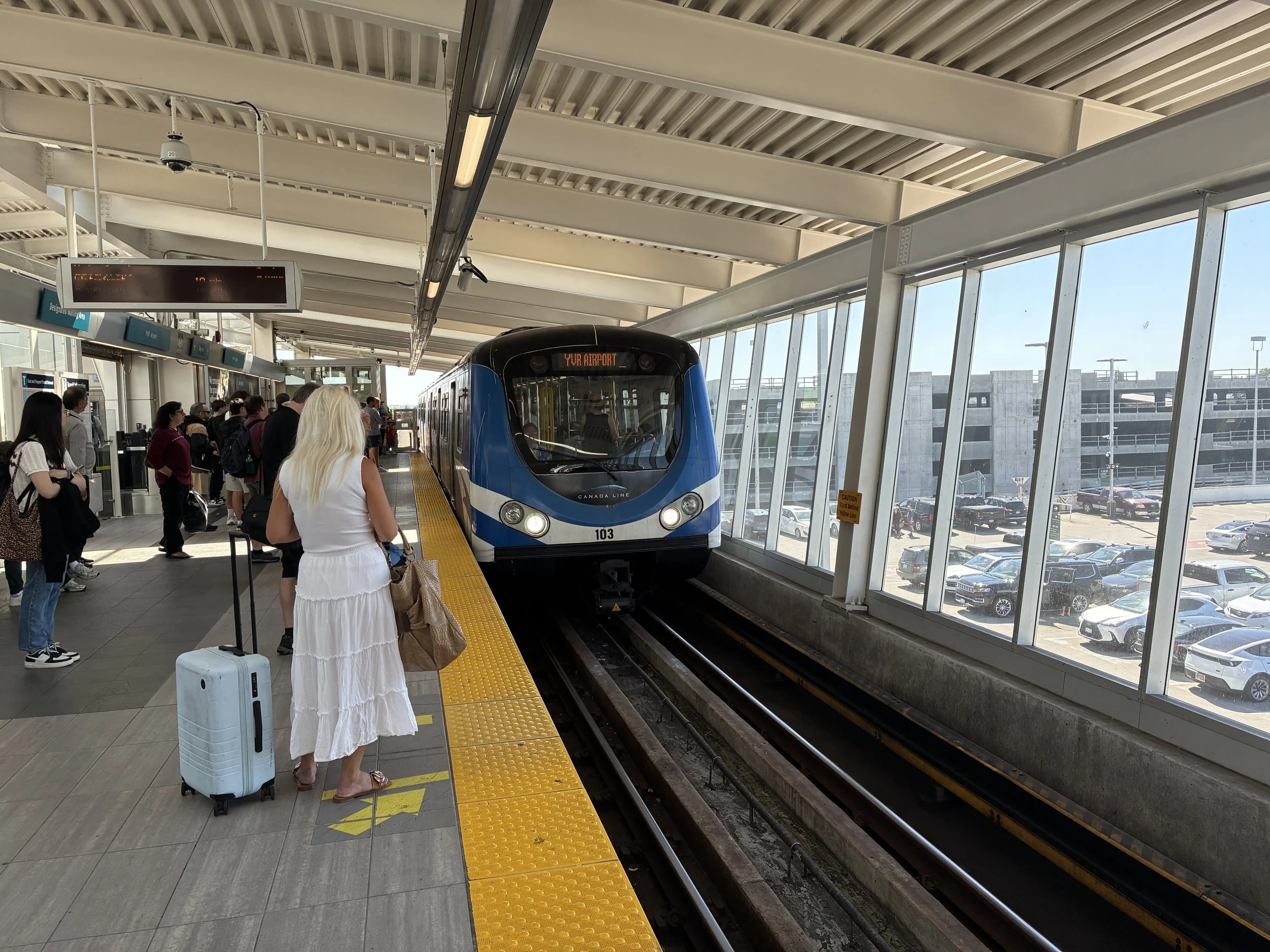 Since Vancouver has a really good mass transit system from the airport (are you listening, Calgary???) and because we only had carry-on luggage, we ditched the cabs and Ubers and opted for public transit instead. The SkyTrain was built for the 1986 World Expo here, but it’s now used by thousands of people every day. It’s just so easy. Buy a ticket at the kiosk and tap the ticket to the turnstile. Soon, here’s your train.