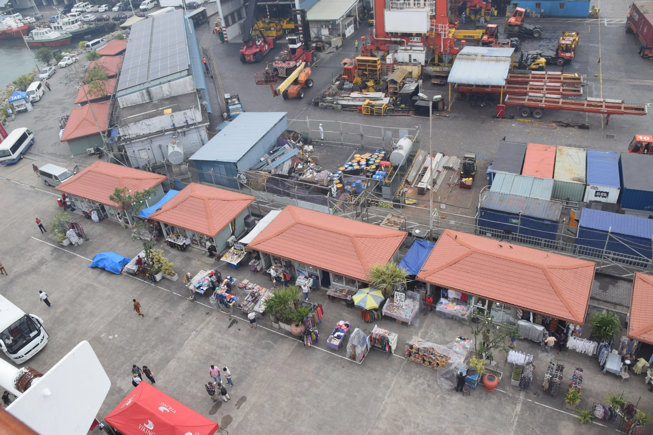 You might’ve noticed that in the pic of the souvenir stands, there’s a lot of extra stuff going on behind the stands. That’s because in Colombo, the cruise terminal is right in the middle of the shipping port. Not adjacent to, or across the bay from, but right in the middle of everything.