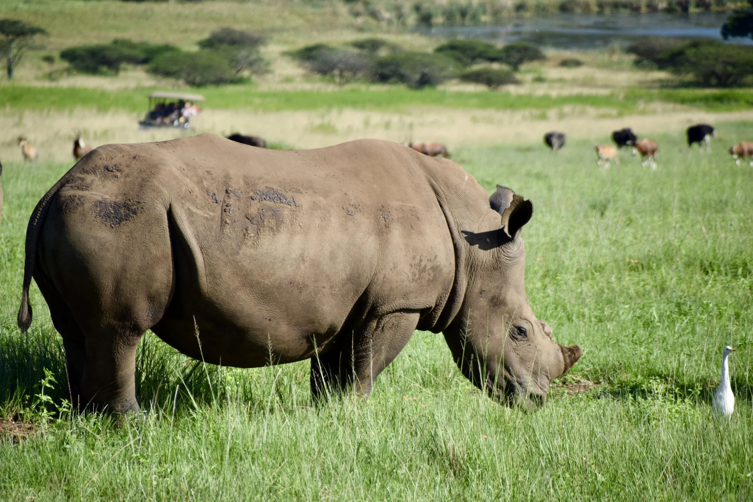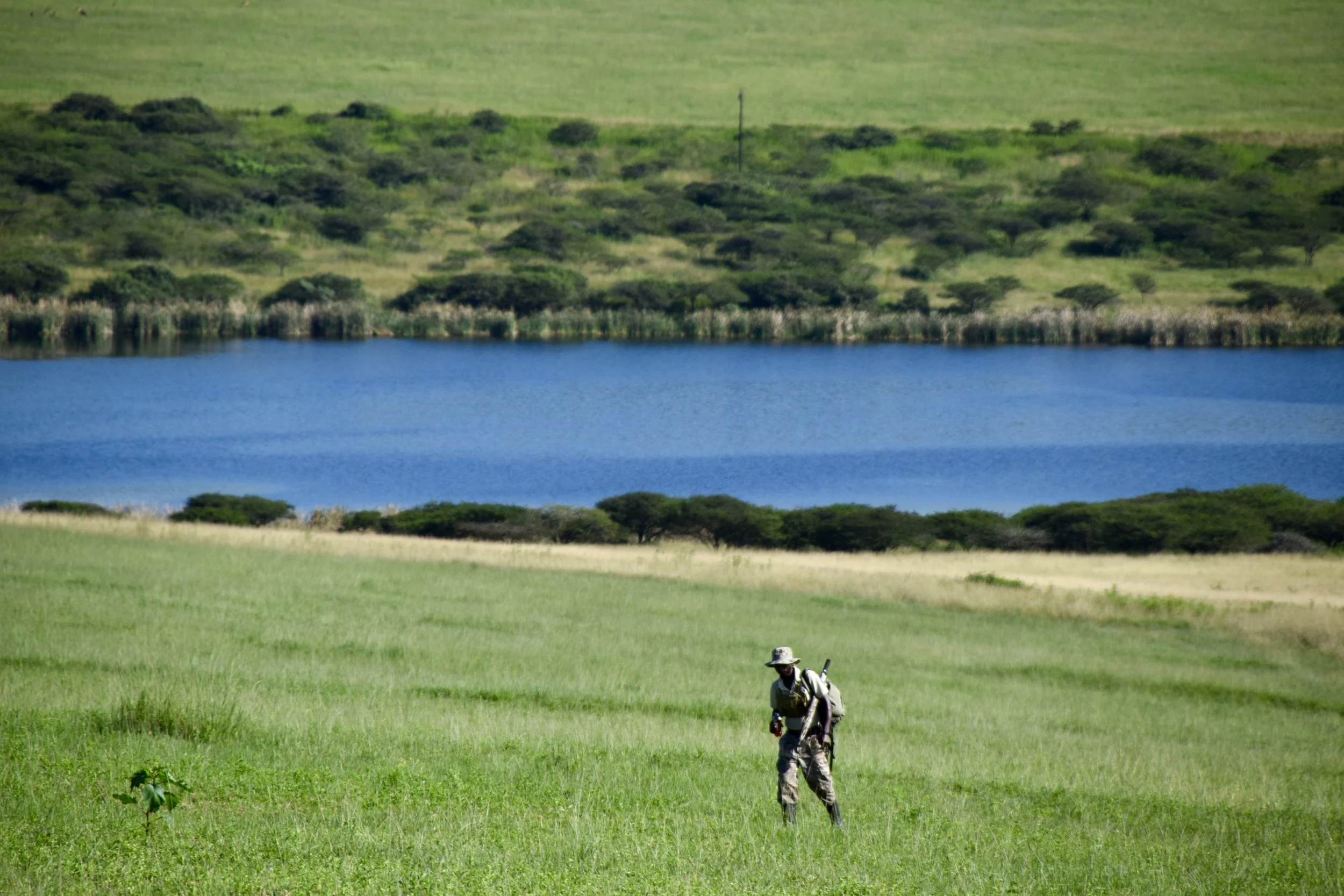 We also spotted the most dangerous creature in the world: a human being. This one is doing a good thing, though, keeping watch over the rhinos to protect them from poachers.