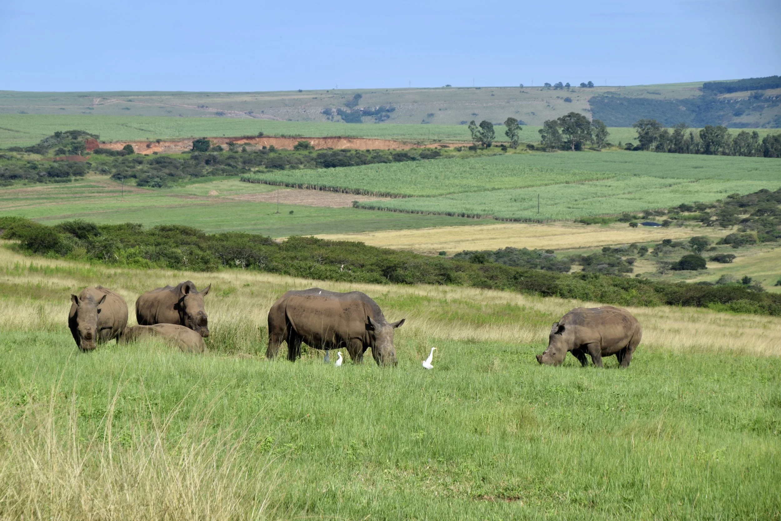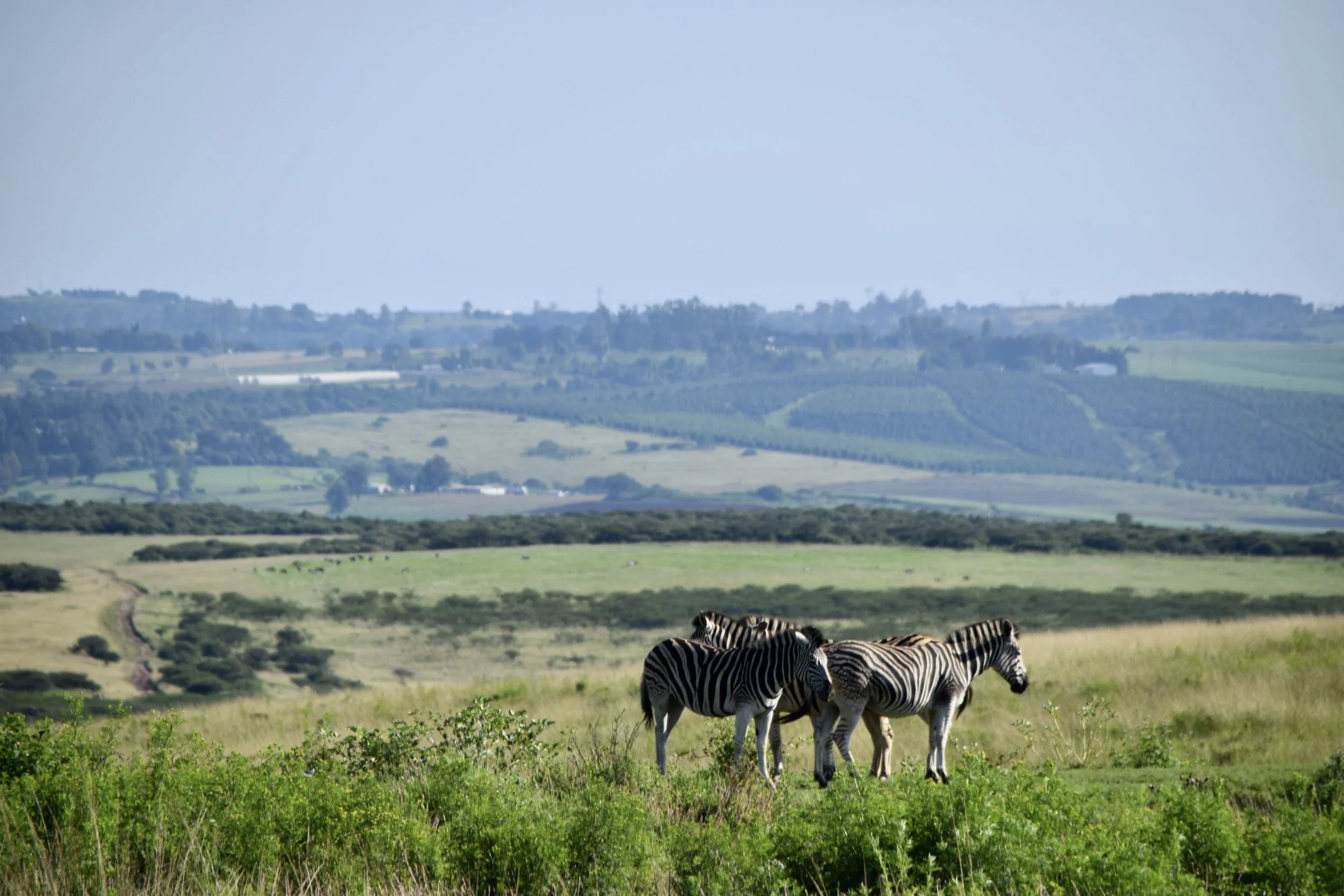 The bus tour guide to the game reserve today was much easier to understand than yesterday’s. Better microphone/speakers and a less-thick accent. It took about an hour to get out to the Tala Game Reserve, much of which I slept through because I was up at 4 AM finishing yesterday’s entry. Unlike yesterday’s late afternoon trek, this one started before 7 AM. Because of the time and the fact that it’s Sunday, the DBD (Durban Business District) was eerily quiet.