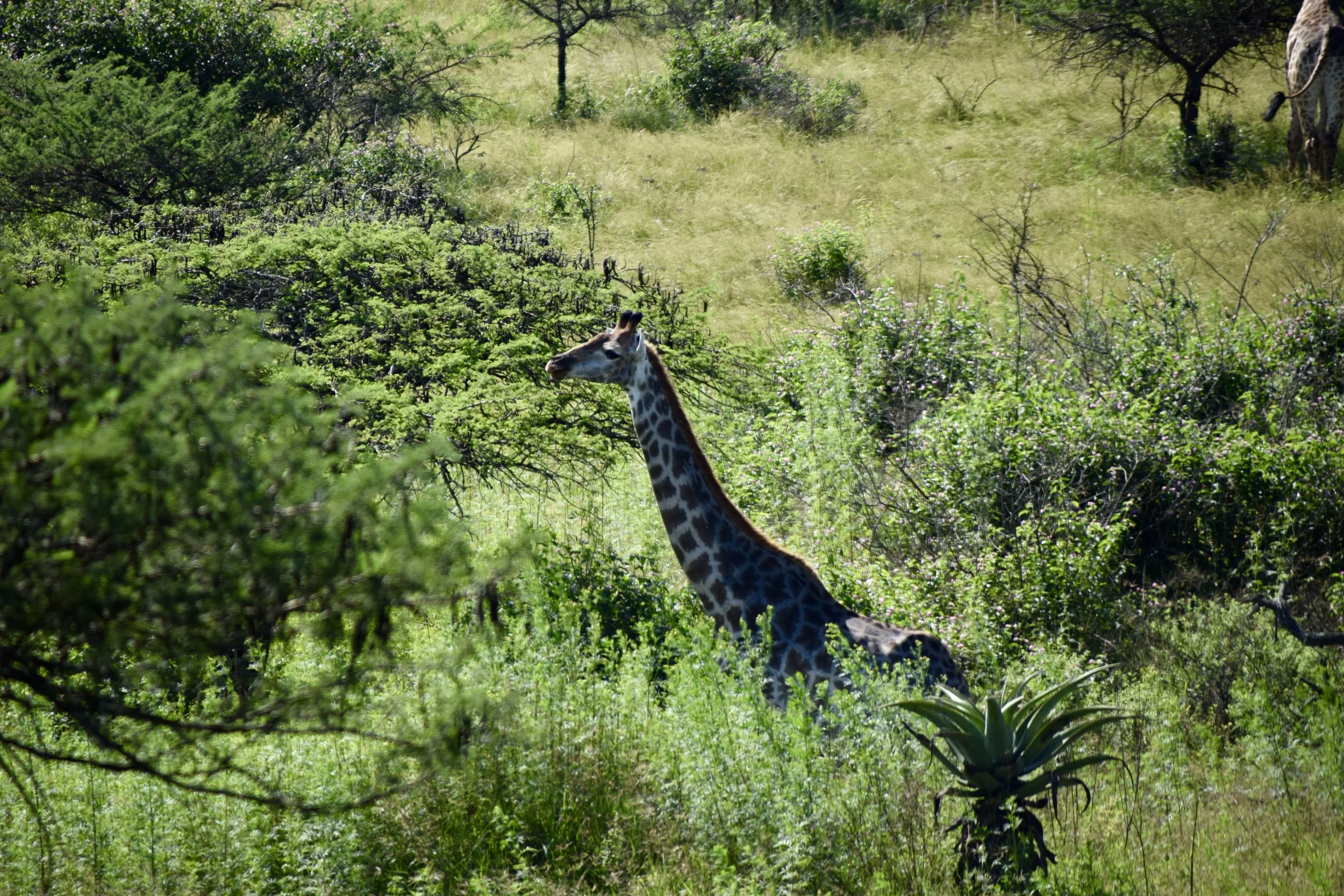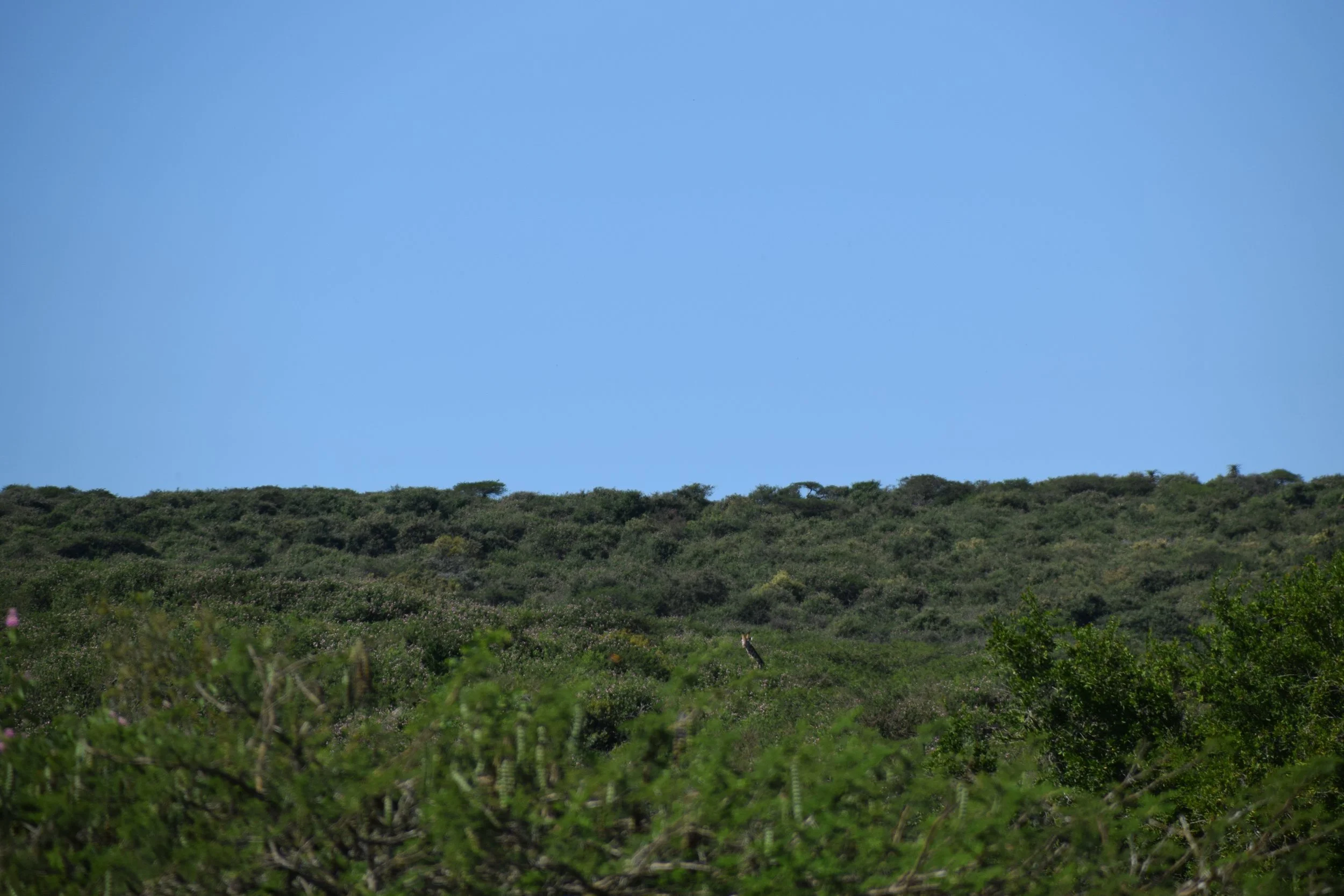 The other was giraffes. Our guide drove to all the acacia groves (their favourite snack) but there weren’t any hanging around. Giraffe hang out together when they want to, and wander around solo when they don’t. Perhaps the lack of sightings meant that if we find one, we’ll find more than one. The guide stopped and pointed to a ridge far away. Even with the zoom lens, it was hard to make out what we were seeing, but the guide said, “there’s one!”