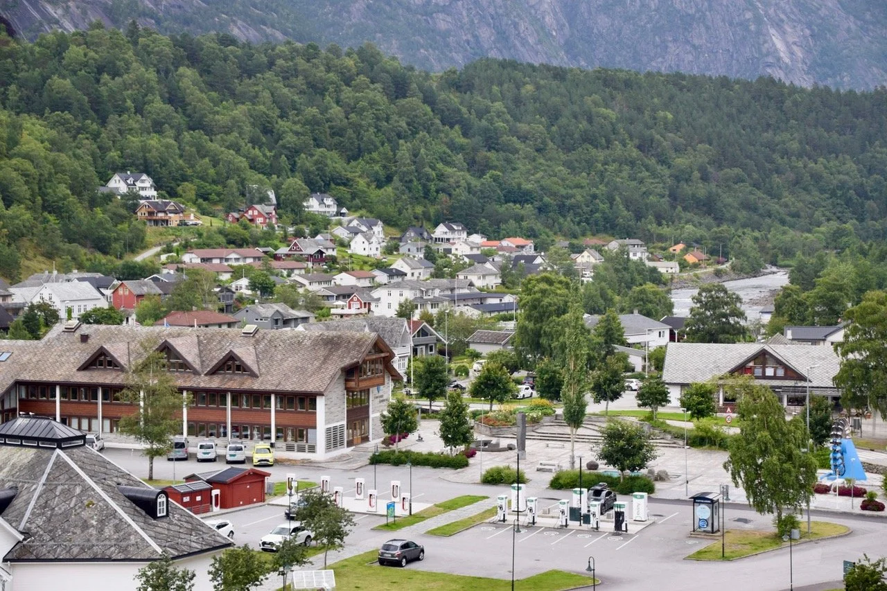 It’s a little town with lots of typical Norwegian architecture, and even though there’s only 500 residents, they have a fuel station with 15 electric vehicle charging ‘pumps’. And during the day, they were all busy (this shot was taken around 7:30am)