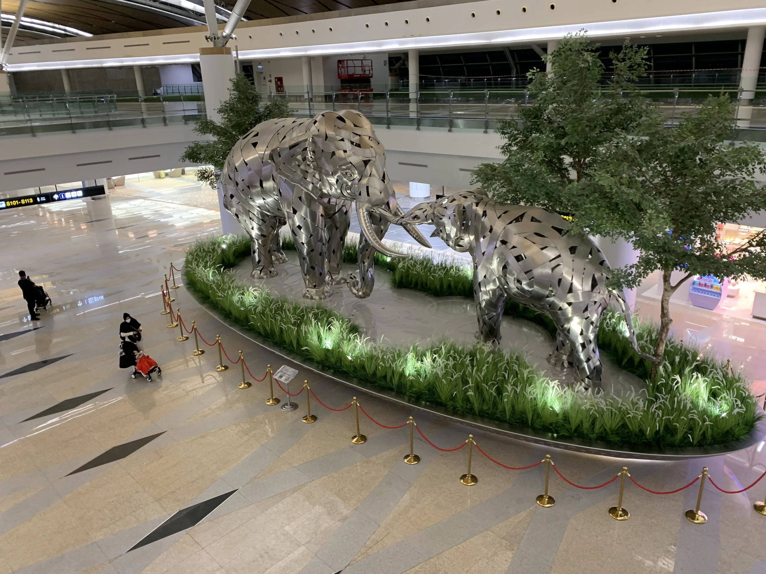 We’d flown through Suvarnabhumi (BKK) before, but this time we arrived at the new terminal. Everything is spotless, shiny, and new. There are some very nice art pieces as well, including a HUGE elephant sculpture that was quite something.