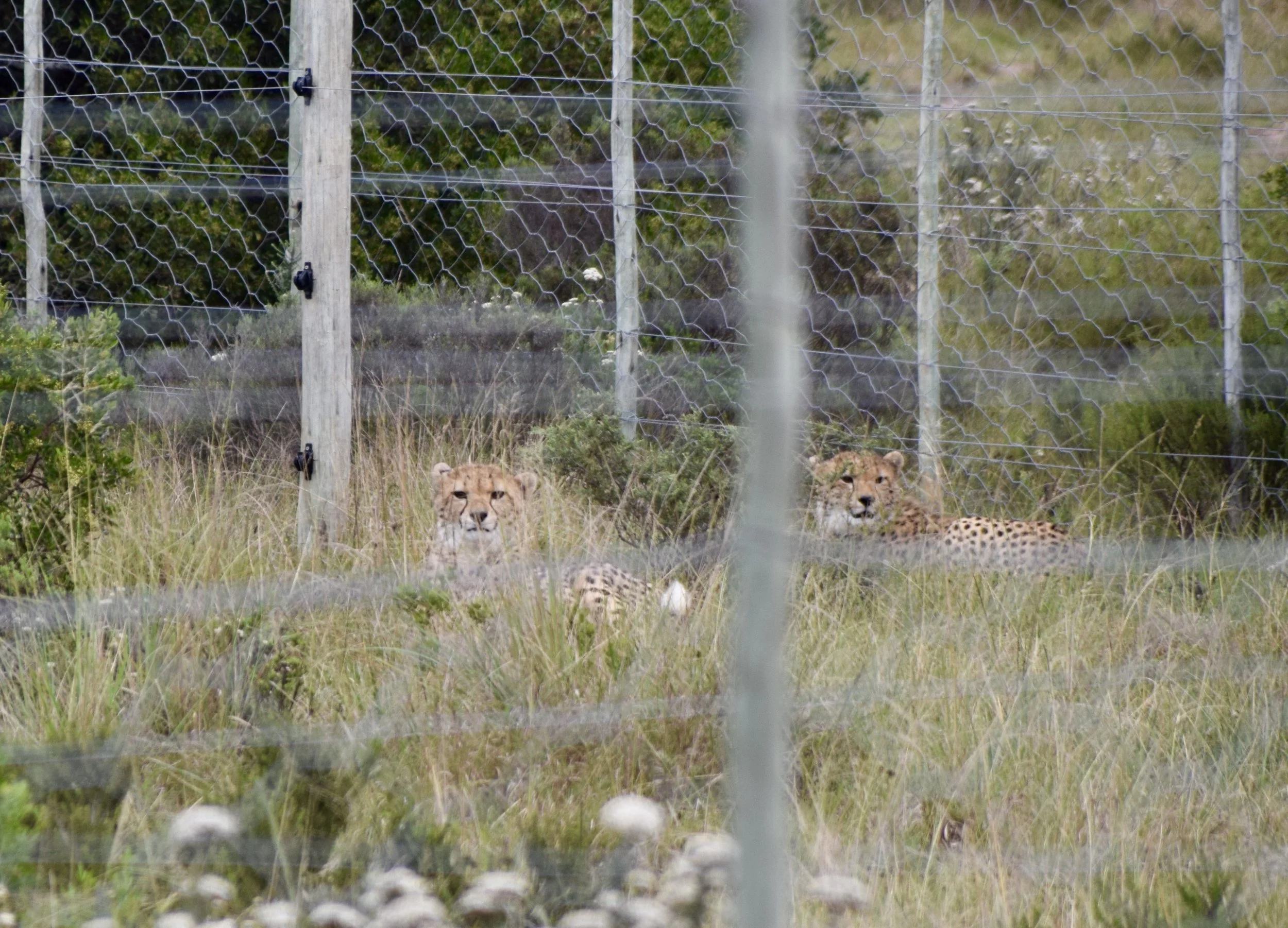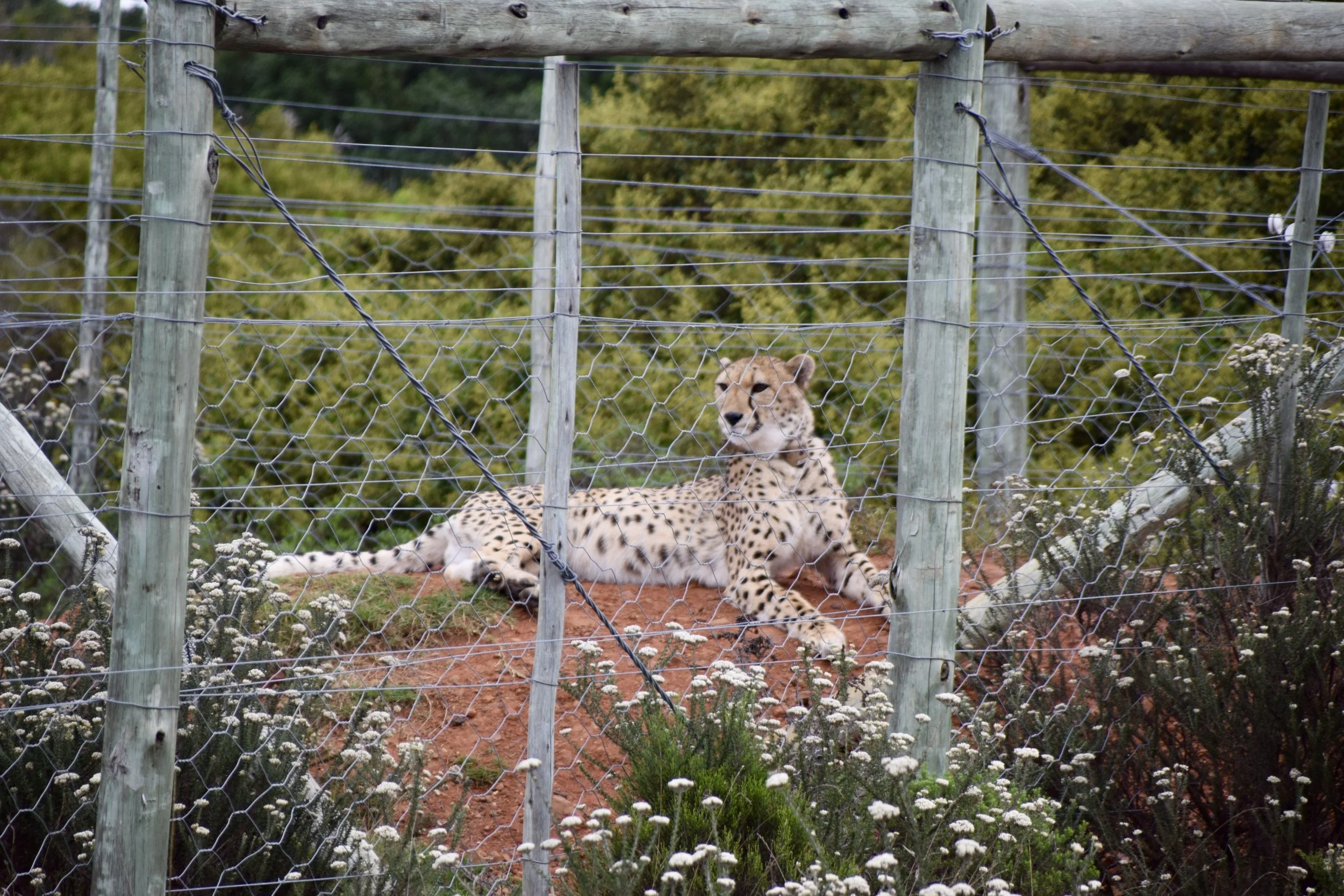 Why were they in a (very large) ‘cage’ when the rest of the animals roam free? The cheetah in the photo was found with a broken leg. When they picked her up, they realized she was lactating. They spent three days looking, and eventually found her three cubs. Cheetah cubs must be taught how to hunt, and other skills that most animals have by instinct. So mom and babies are secluded while her leg heals and the cubs can be taught how to survive in the wild. They’ll be set free soon.