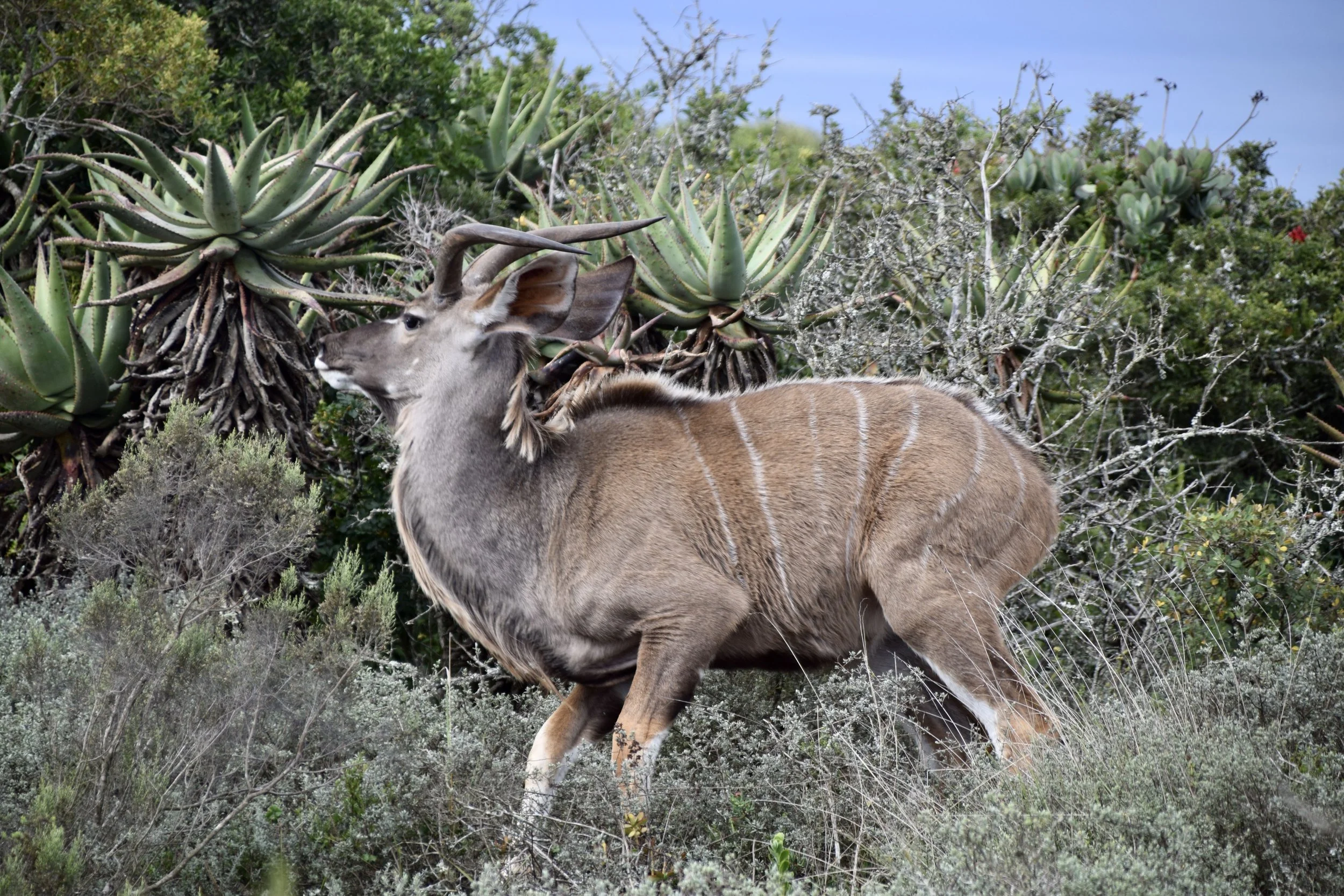 This one is a kudu. They’re very hard to find and photograph because they’re very skittish. Managed to snap this pic before he took off into the brush.
