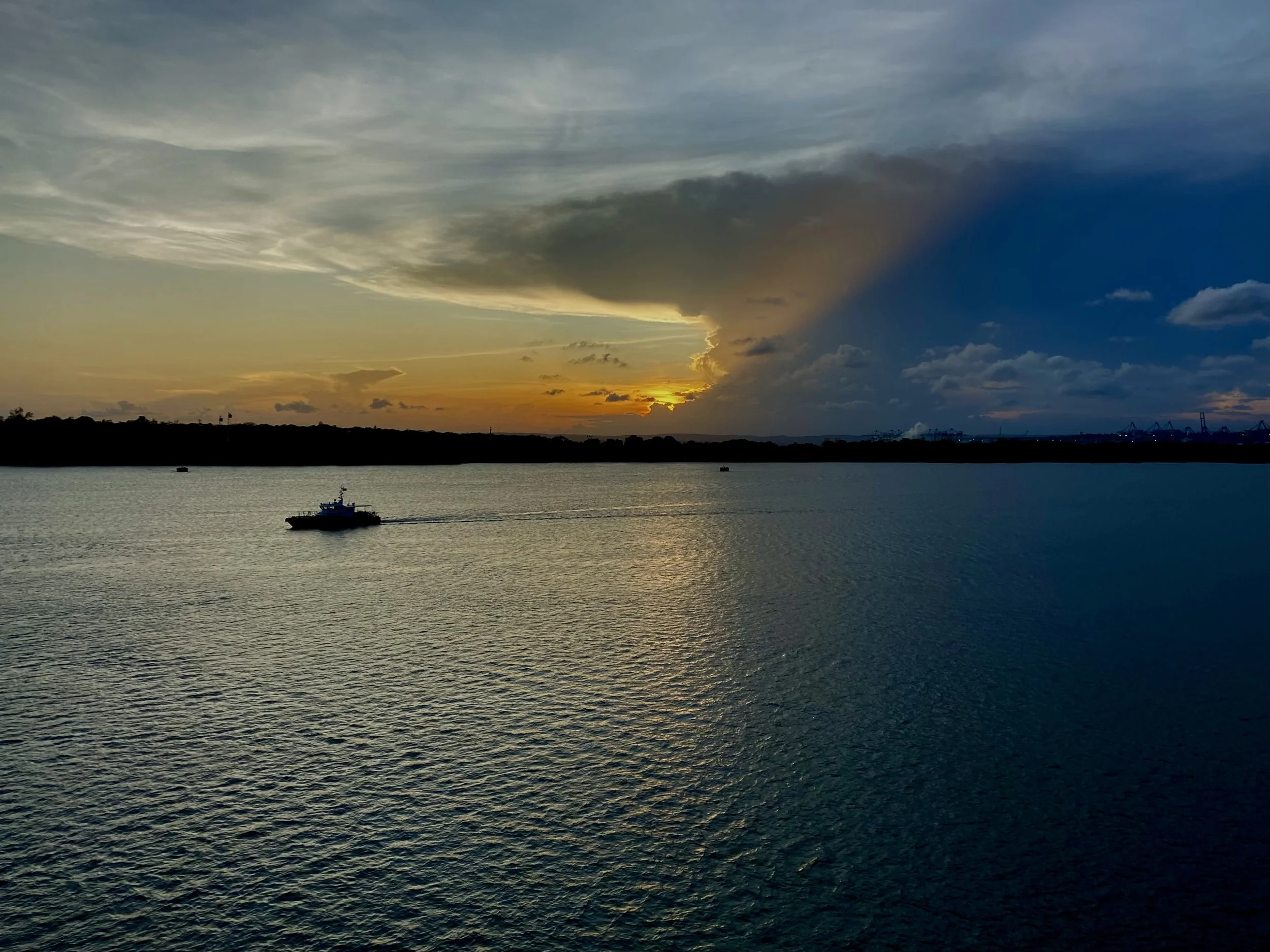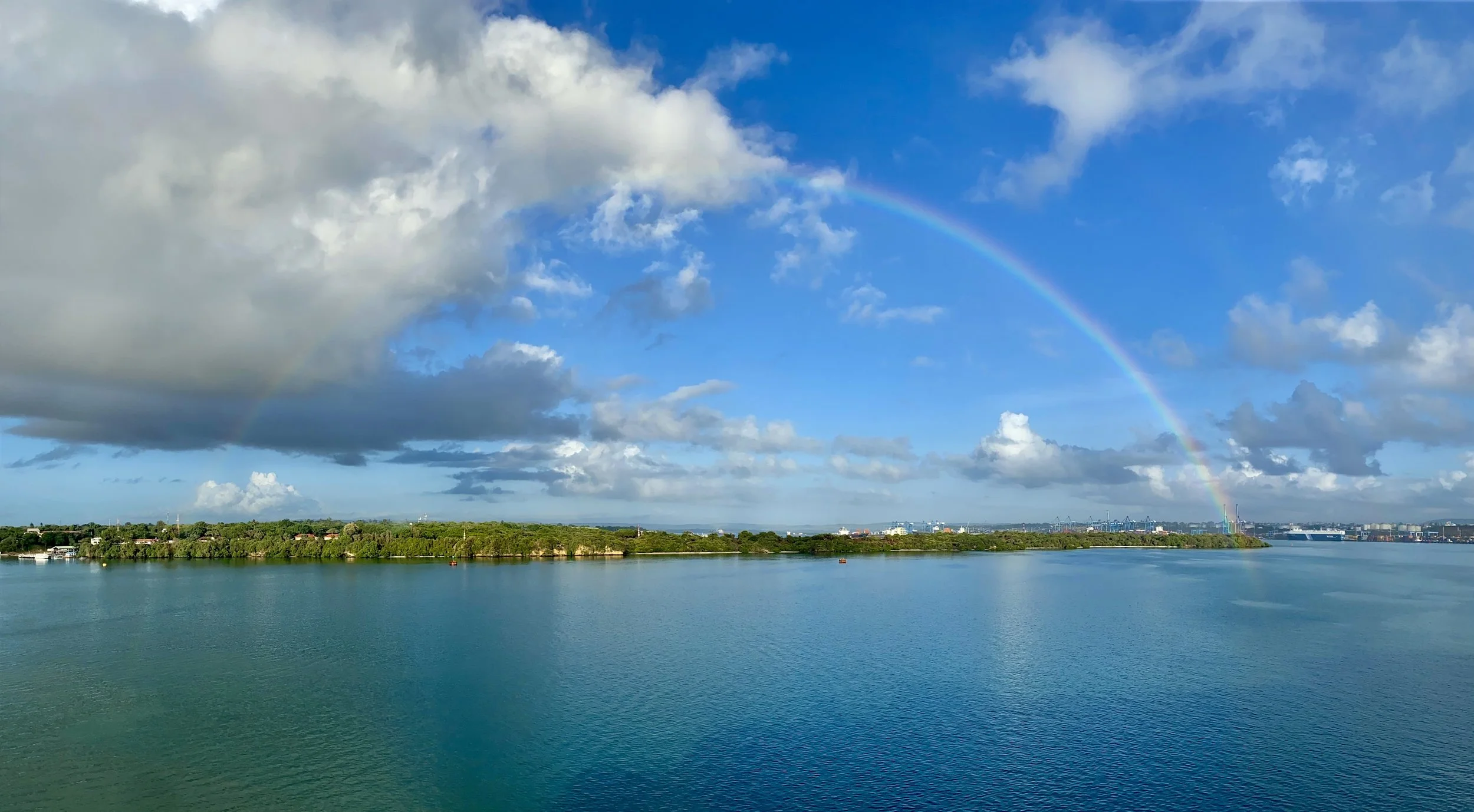 It’s only the second or third time in my life I’ve seen a complete rainbow end-to-end and it’s the first time in my life I’ve ever literally seen the end of the rainbow. It was right next to our ship, in the water. Now, if there was a pot of gold, it was well beneath the surface of the water, so I can’t verify the truth of that tale or not. I’m pretty sure I heard a frog playing banjo, though.