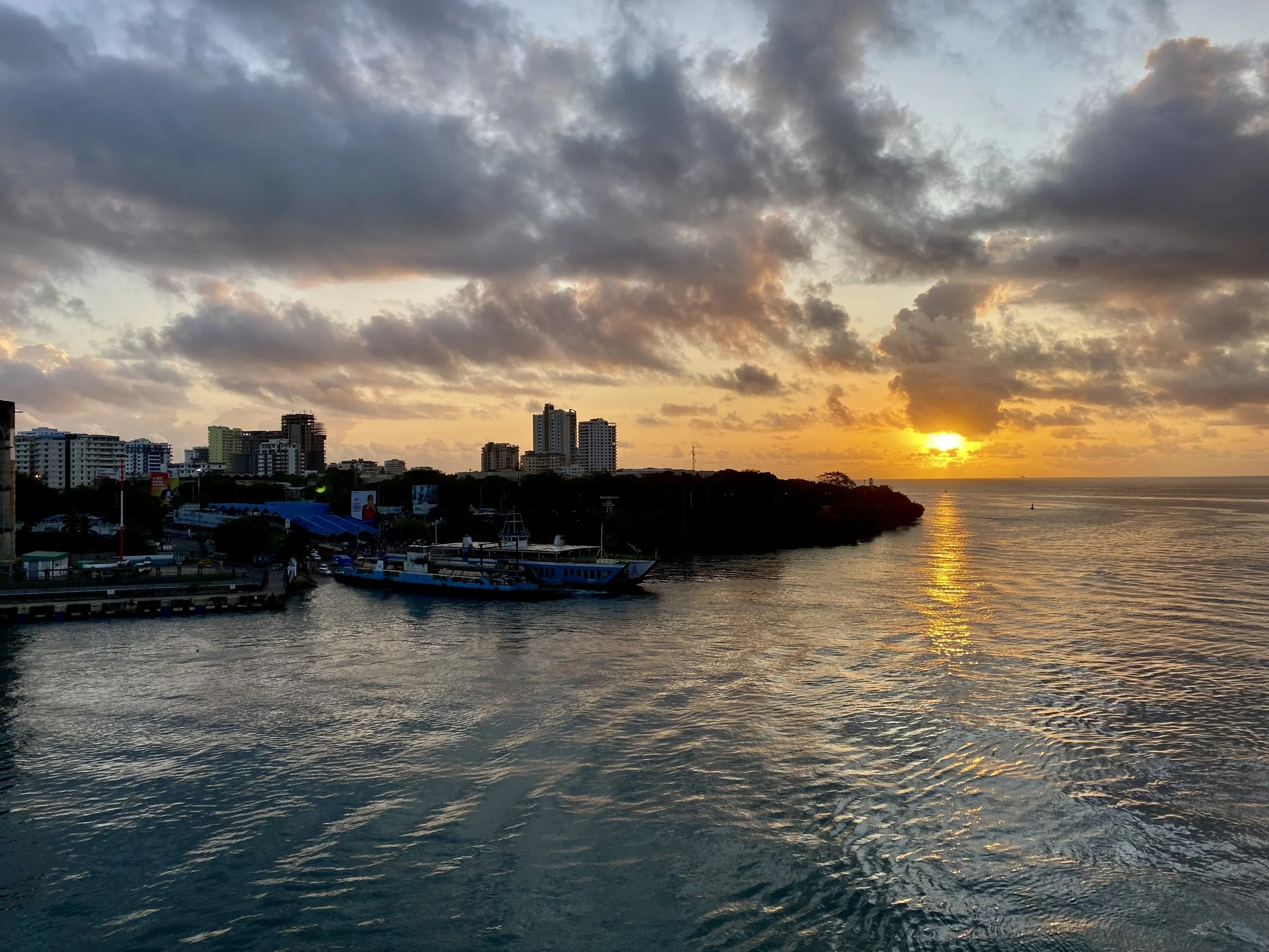 Woke up and headed to brekkie just as we were pulling into the coastal city of Mombasa, Kenya. A nice sunrise greeted us as we neared the dock.