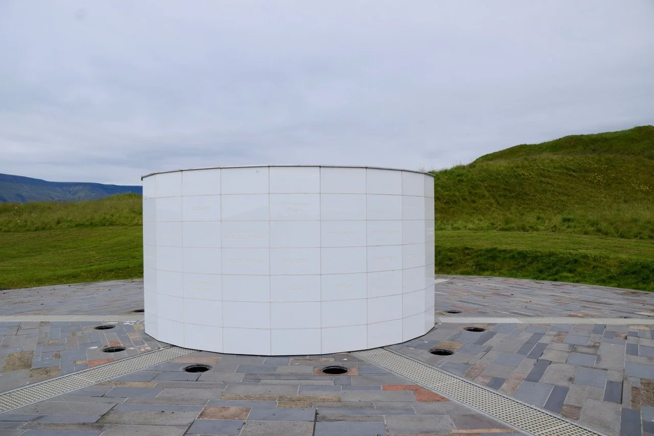 Around the back of that and down a path is the Imagine Peace Tower, designed by Yoko Ono as a tribute to John Lennon.