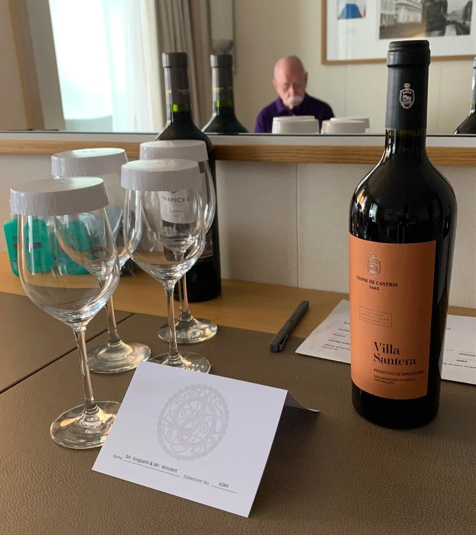 Back on the ship, Rob said that we’d been given a nice ‘sorry your room service wasn’t up to our standards’ card (because it was a bit late) and a bottle of wine for the room.