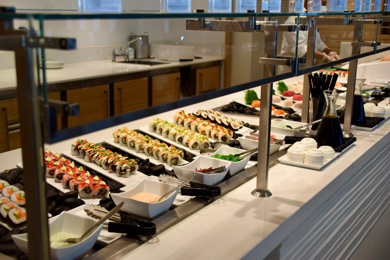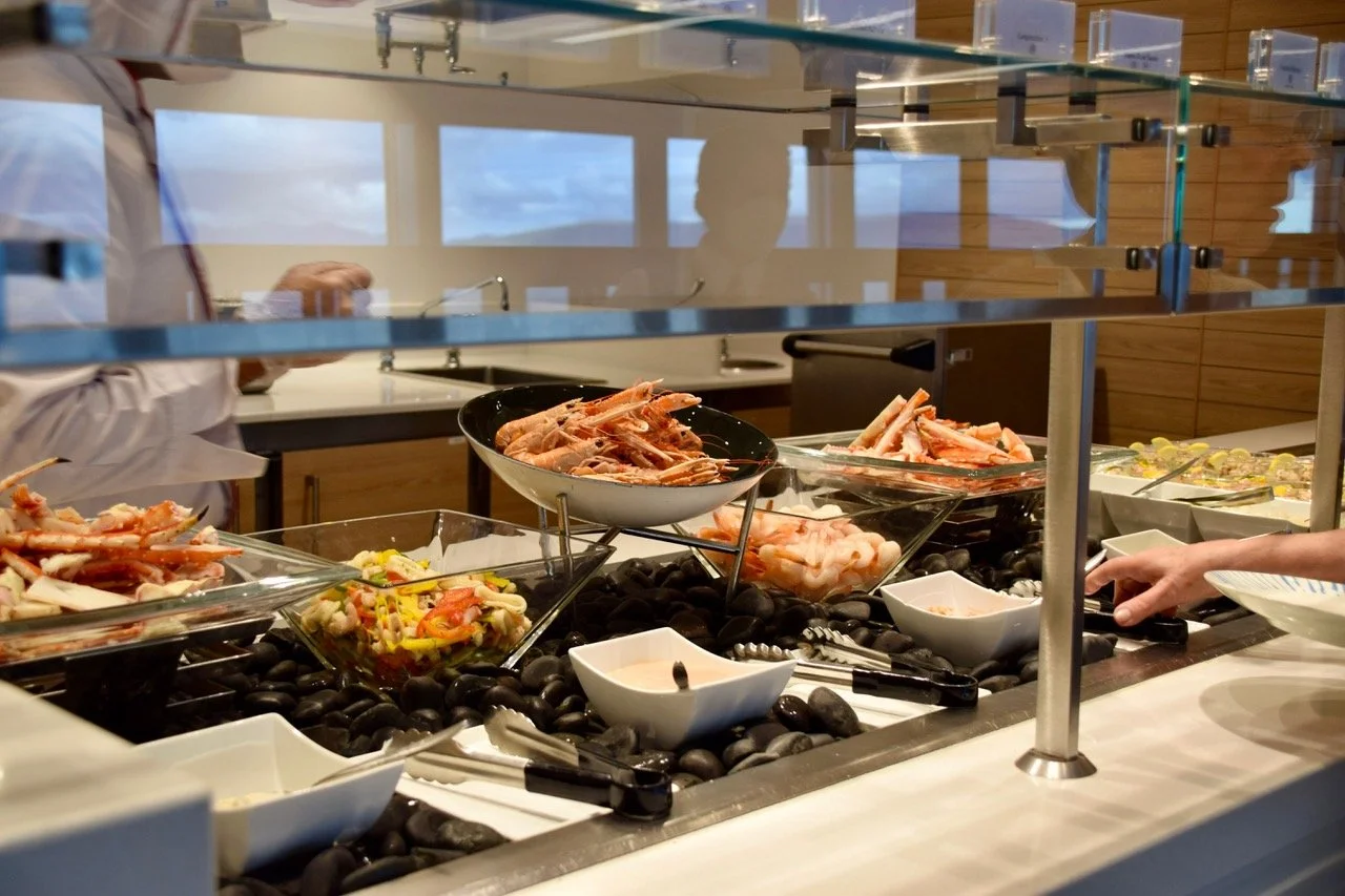 The World Café buffet was doing “Flavours of the Sea” tonight with a seafood-heavy offering. It looked pretty good.