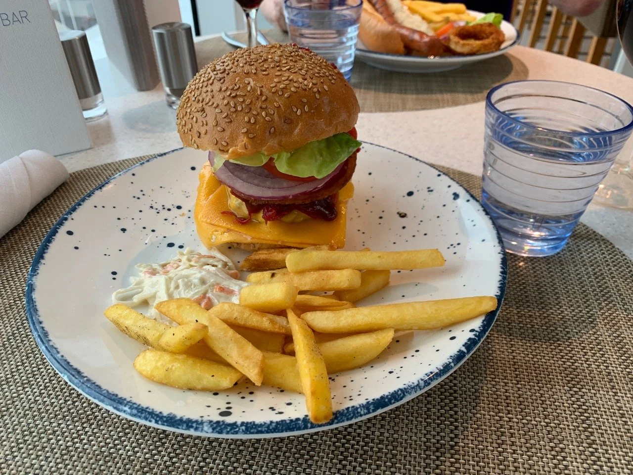 Rob and I headed to the Poolside Grill for burgers and dogs. They were delicious.