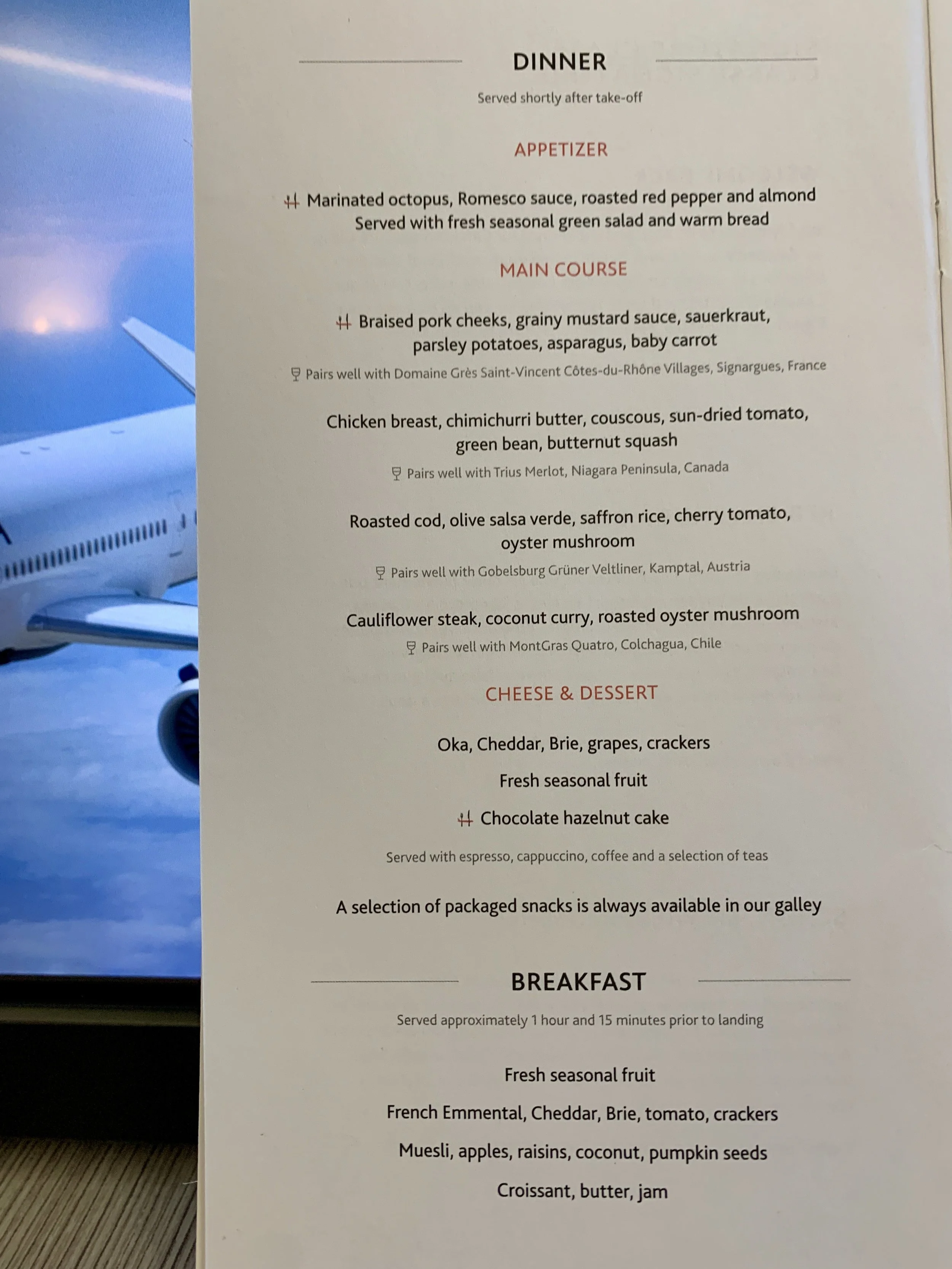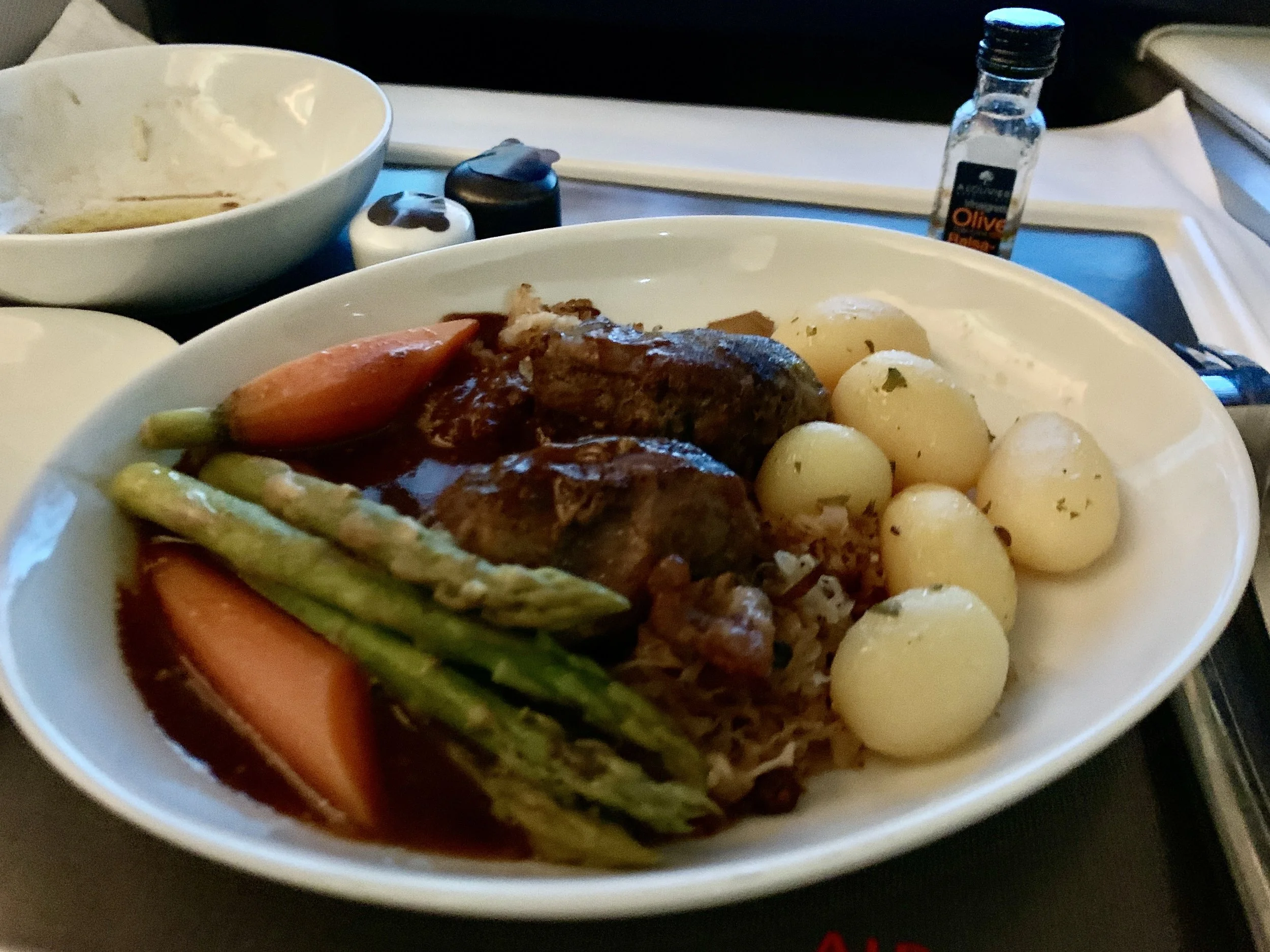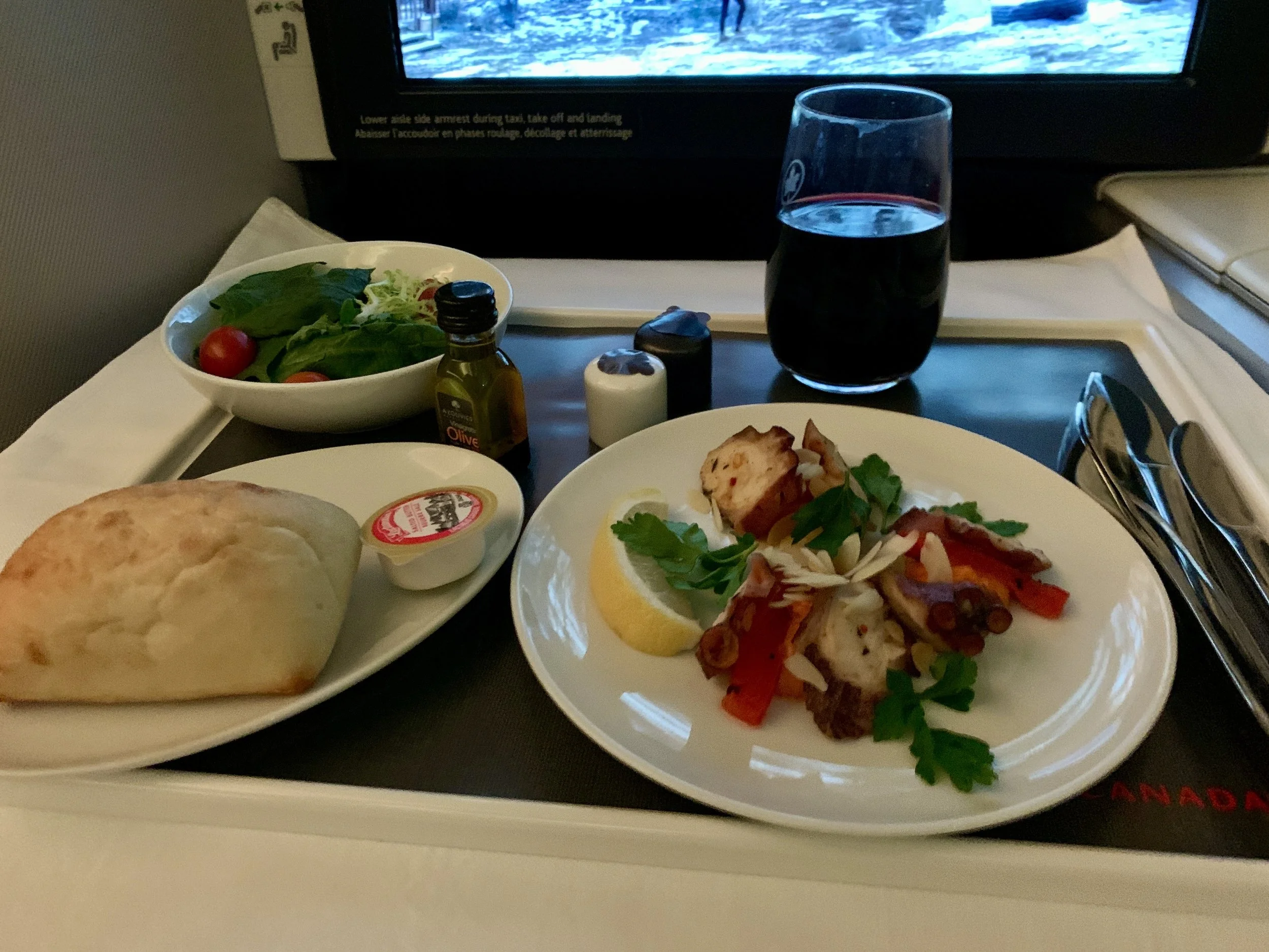 Where Air Canada really excels, though, is the food. It was all really good, cooked properly (veggies were still crisp!), and there were some interesting flavours.