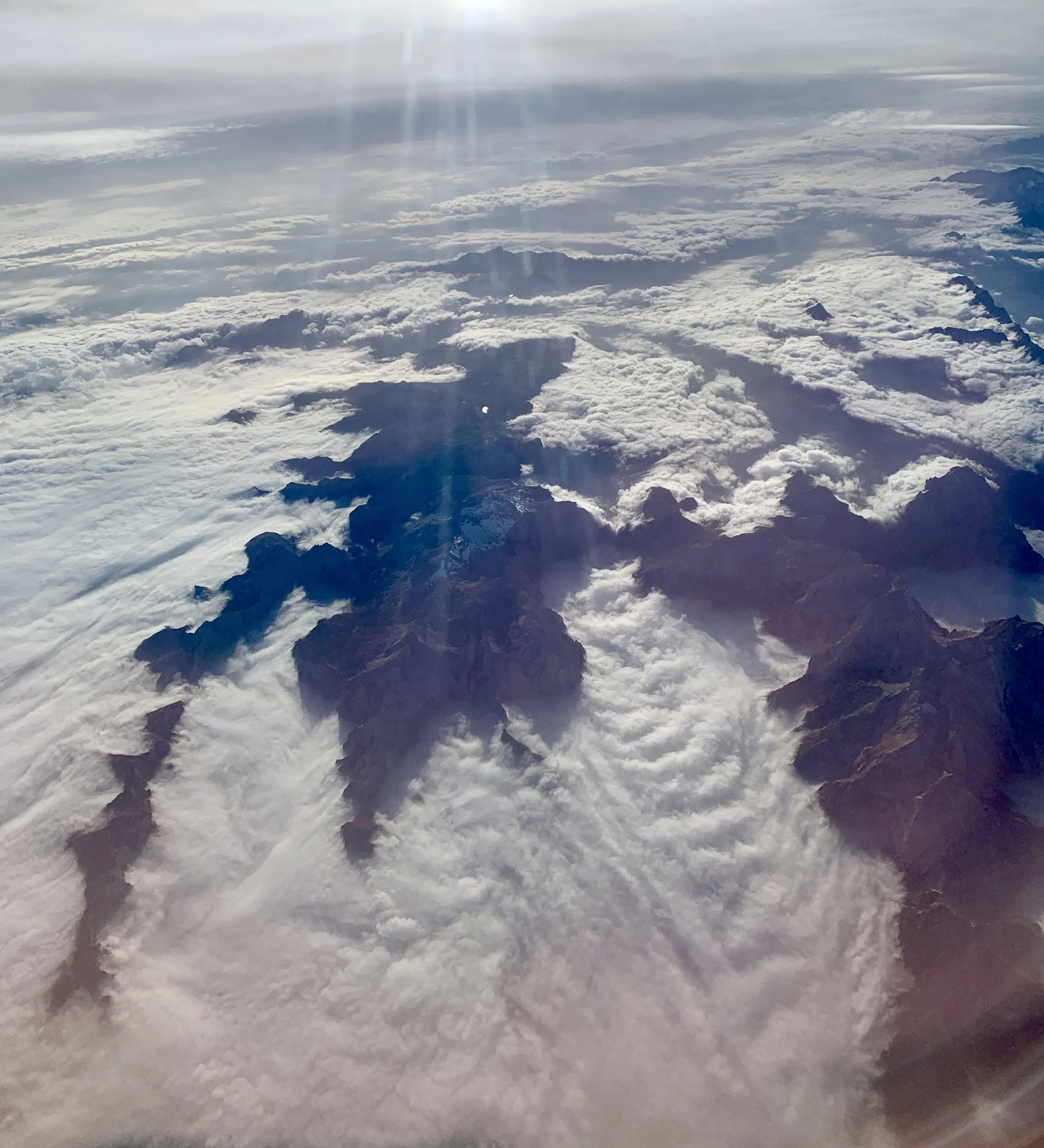It was at this point that we hit the first snag. The plane was late arriving in Frankfurt, so by the time we boarded, we’d missed our takeoff slot and sat on the tarmac for almost an hour before we could take off. Once in the air, however, there were some nice views of the Alps out the window.