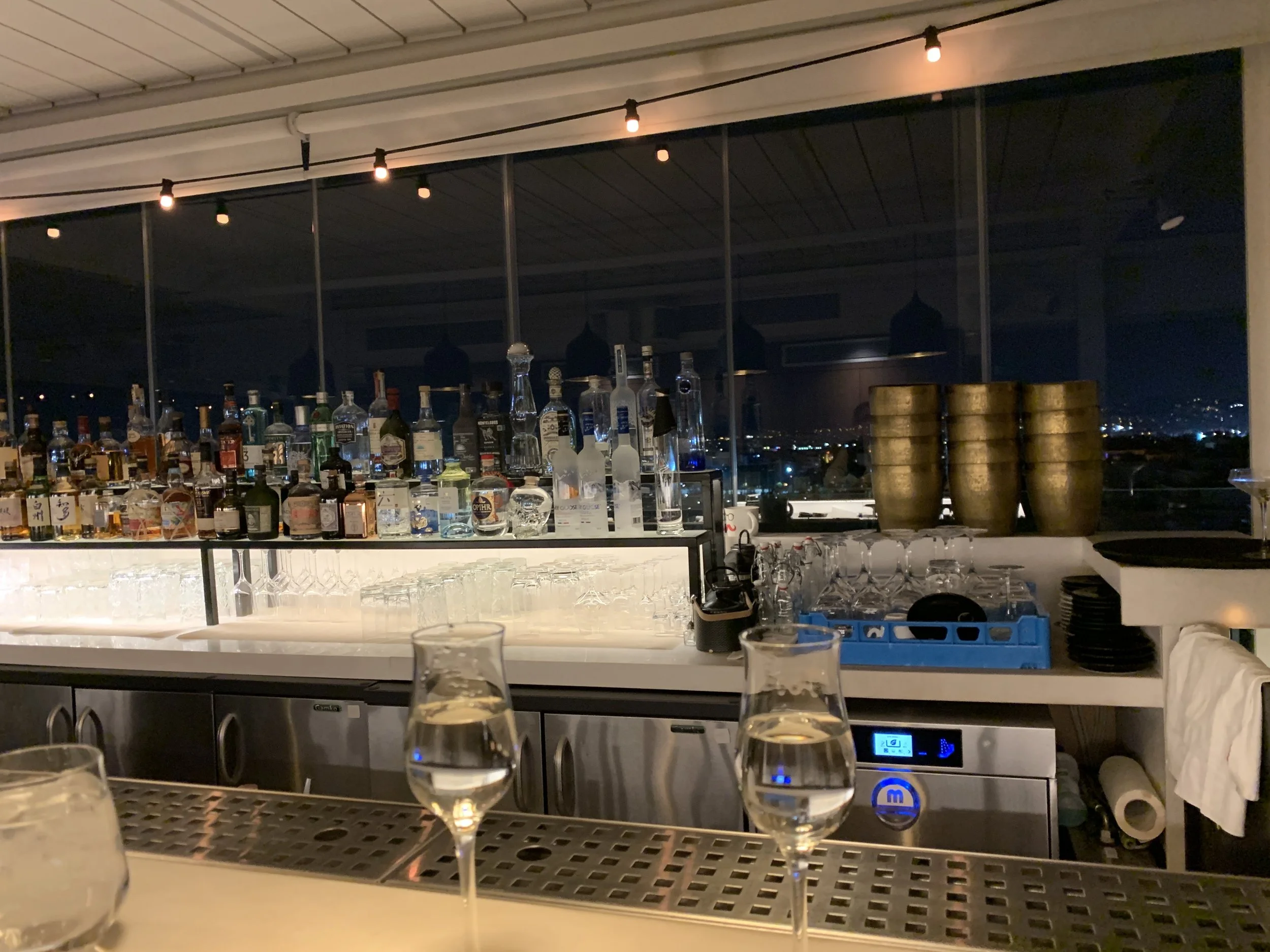 Even though we were both wiped out after about 12 hours on planes and an exhausting 45 minutes of butt-clinching and white-knuckling in the taxi, we decided to head up to the rooftop bar for a drink. We’d planned on ouzo, but they had run out, so the bartender suggested a mastika - a sweet liquor made from a local tree. It was pretty good.