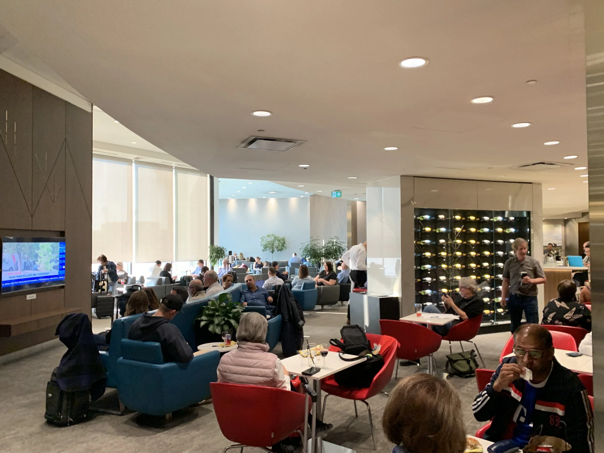 Eventually, we touched down in Frankfurt for a layover. Our bird was parked all the way at the end of one terminal and our connection was near the end of another one. Frankfurt airport is HUGE. We did a 2.3km walk between the two gates, with two sets of security areas to go through on the way, plus customs/passport control. We were more than ready for the lounge when we finally got to it.