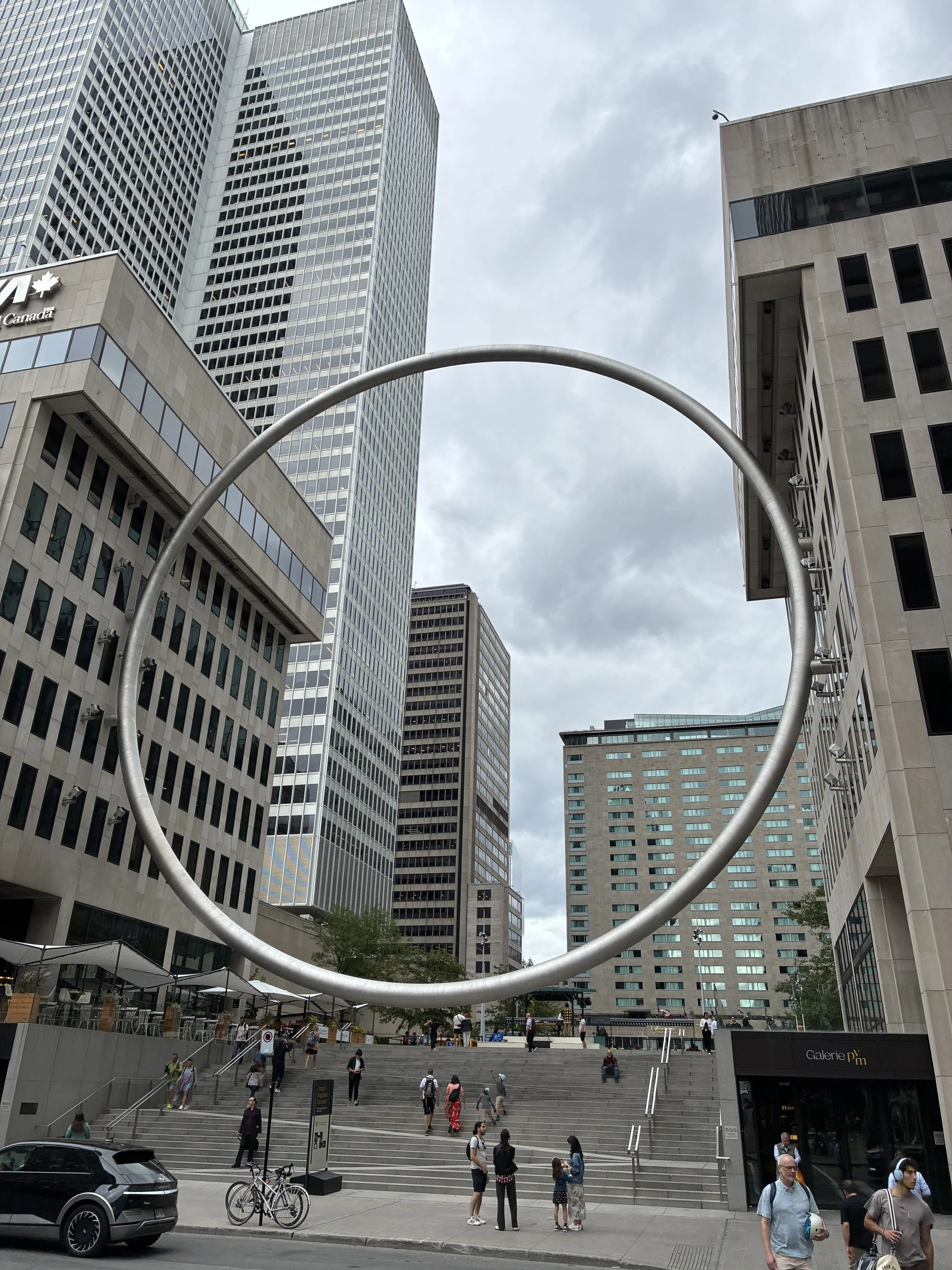 On the way back, I noticed that Montreal has a big metal donut like Calgary does, only theirs is smaller and sits between buildings.