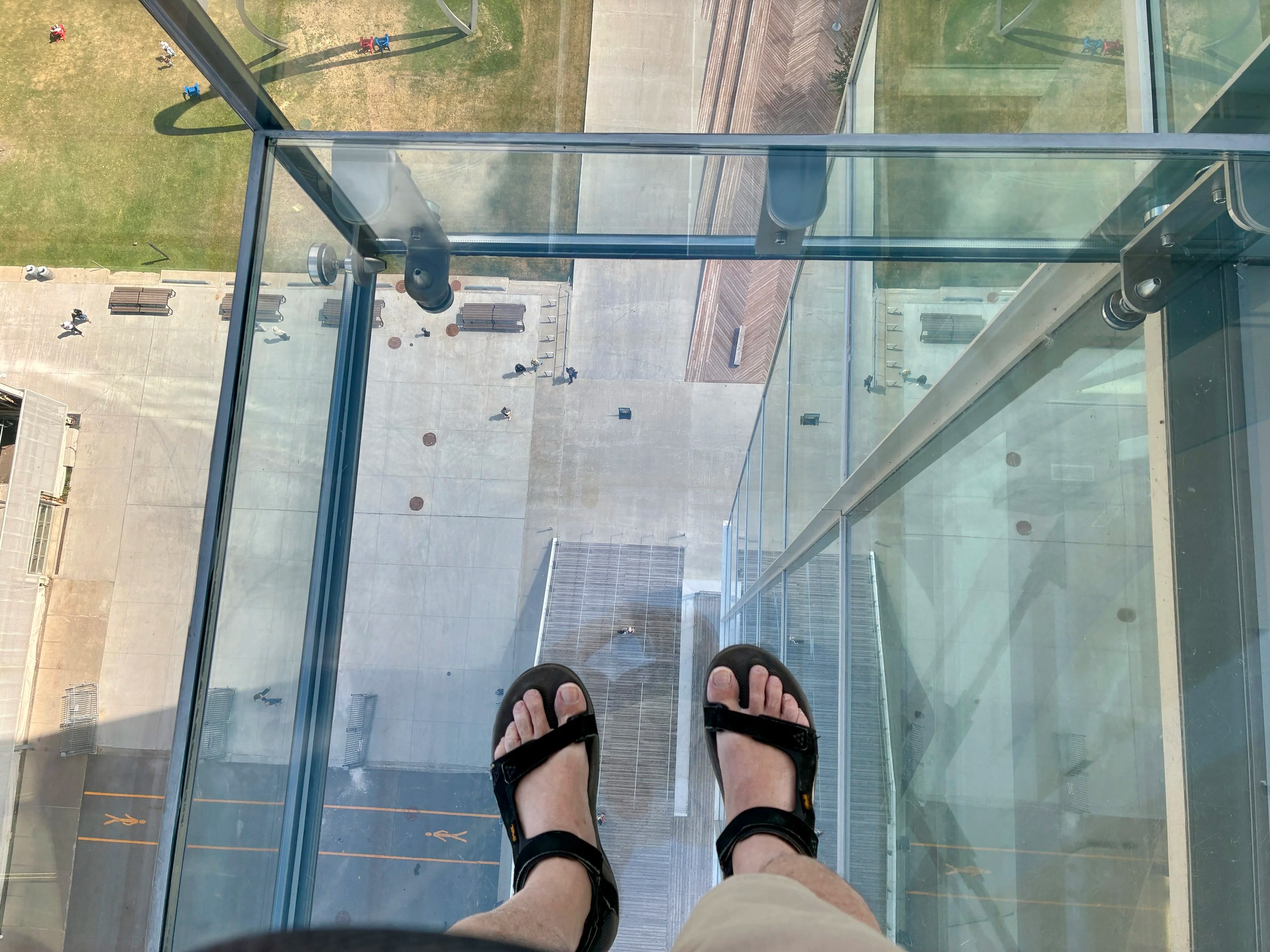 I can ride any coaster on earth and barely have an increase in my heart rate, but stepping out into that little glass box almost gave me a panic attack. I couldn’t make myself step out onto it if I was looking down - I had to look straight ahead and ignore the floor, then look down after I was already out there. Also, a lack of any handrails at all took whatever shred of comfort I had and destroyed that, too.