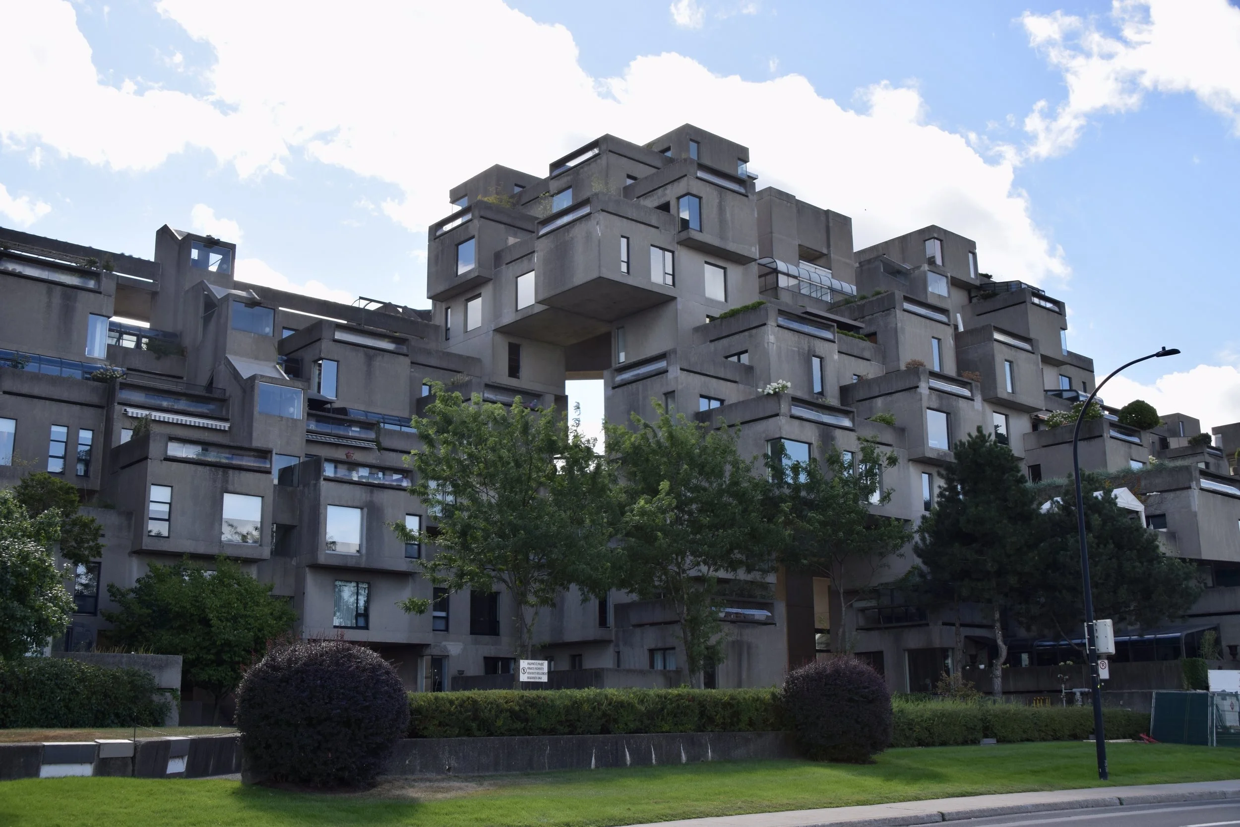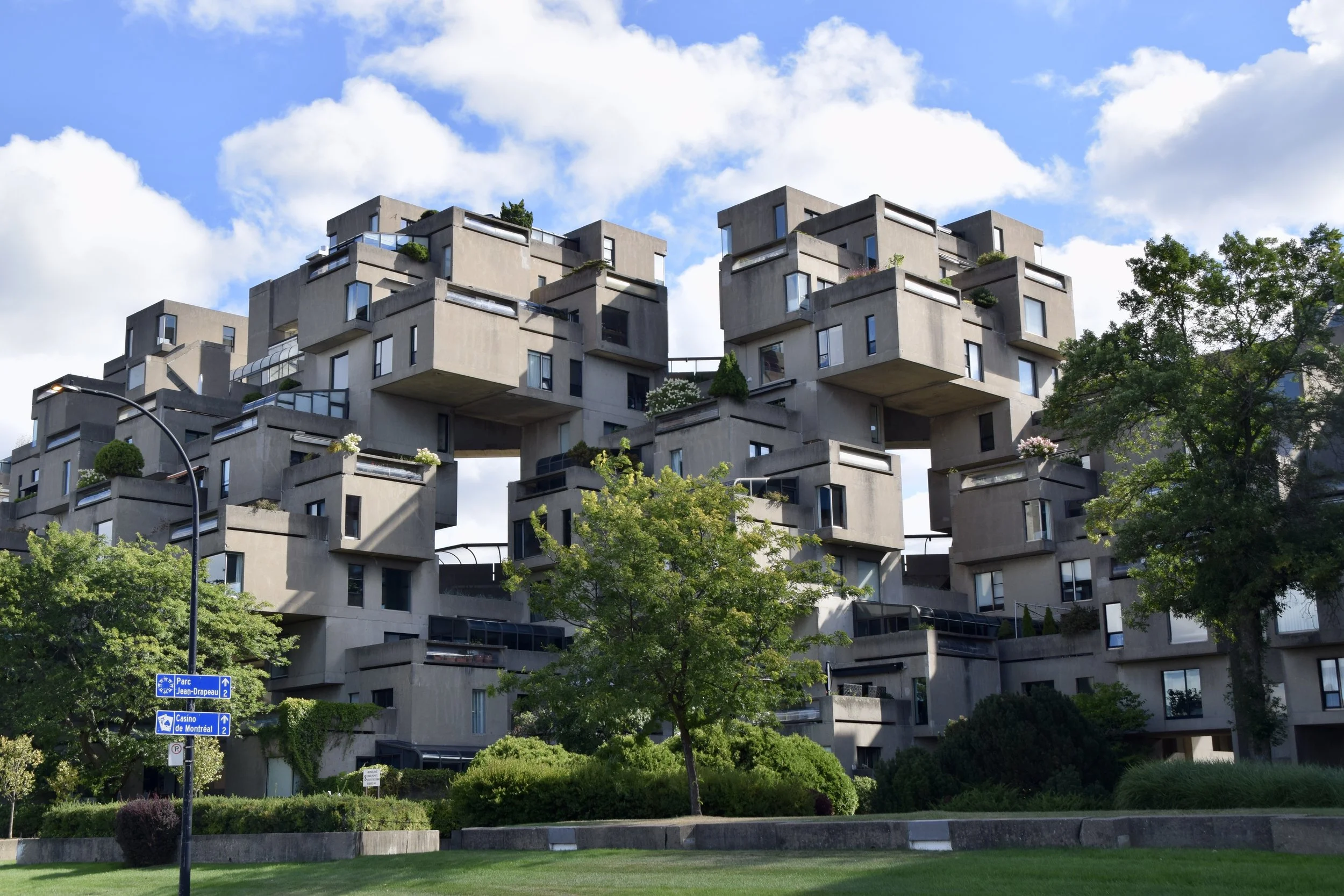 Habitat 67 was his first major project - the idea was to create living spaces that had amenities like privacy and garden terraces, usually associated with single-family dwellings, but have it all exist in a densly-populated area with a sense of community. All the units could be made prefabricated and assembled on site. It consists of 354 identical cubes stacked in various ways, which make up 146 condo units.
