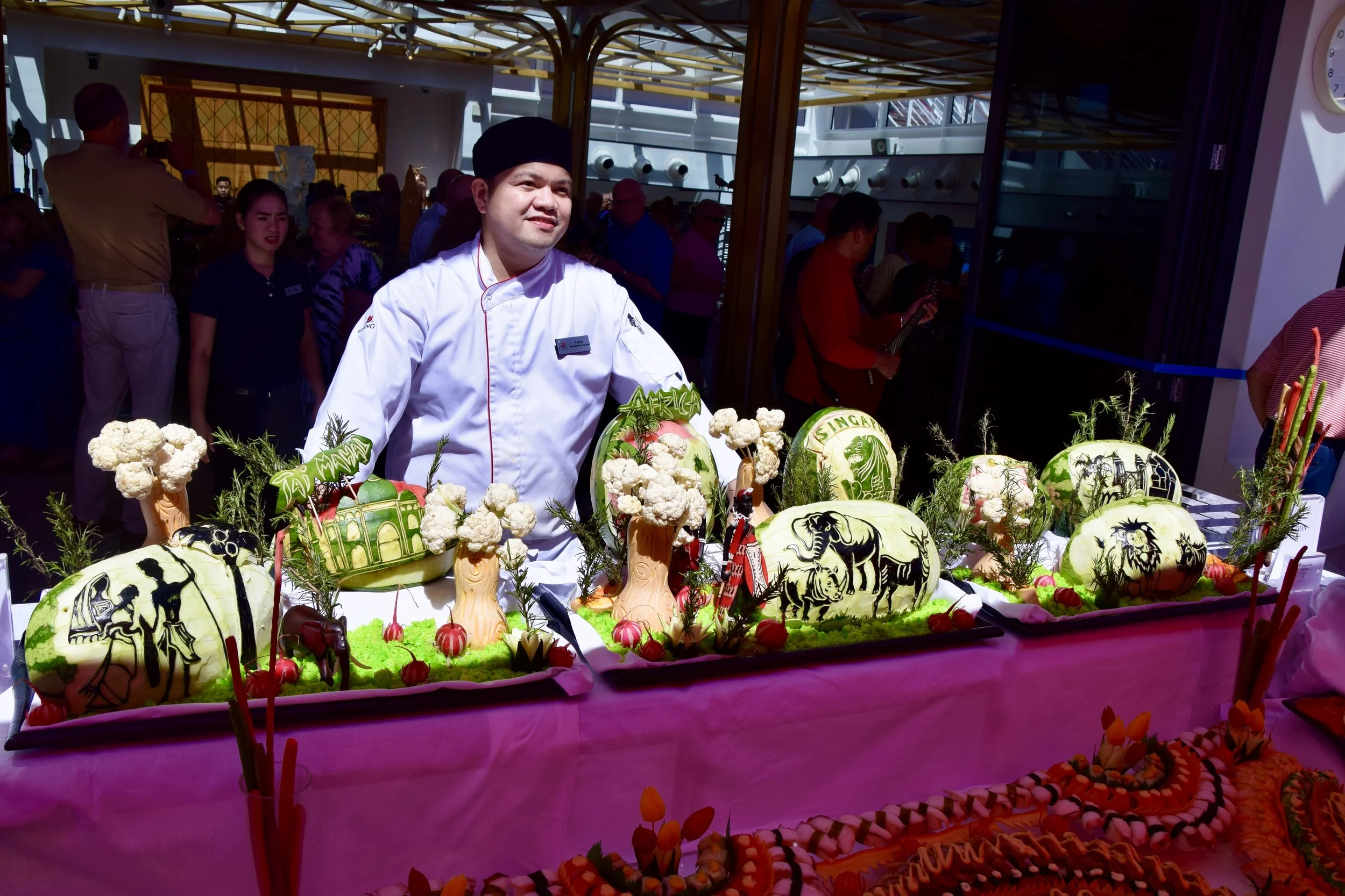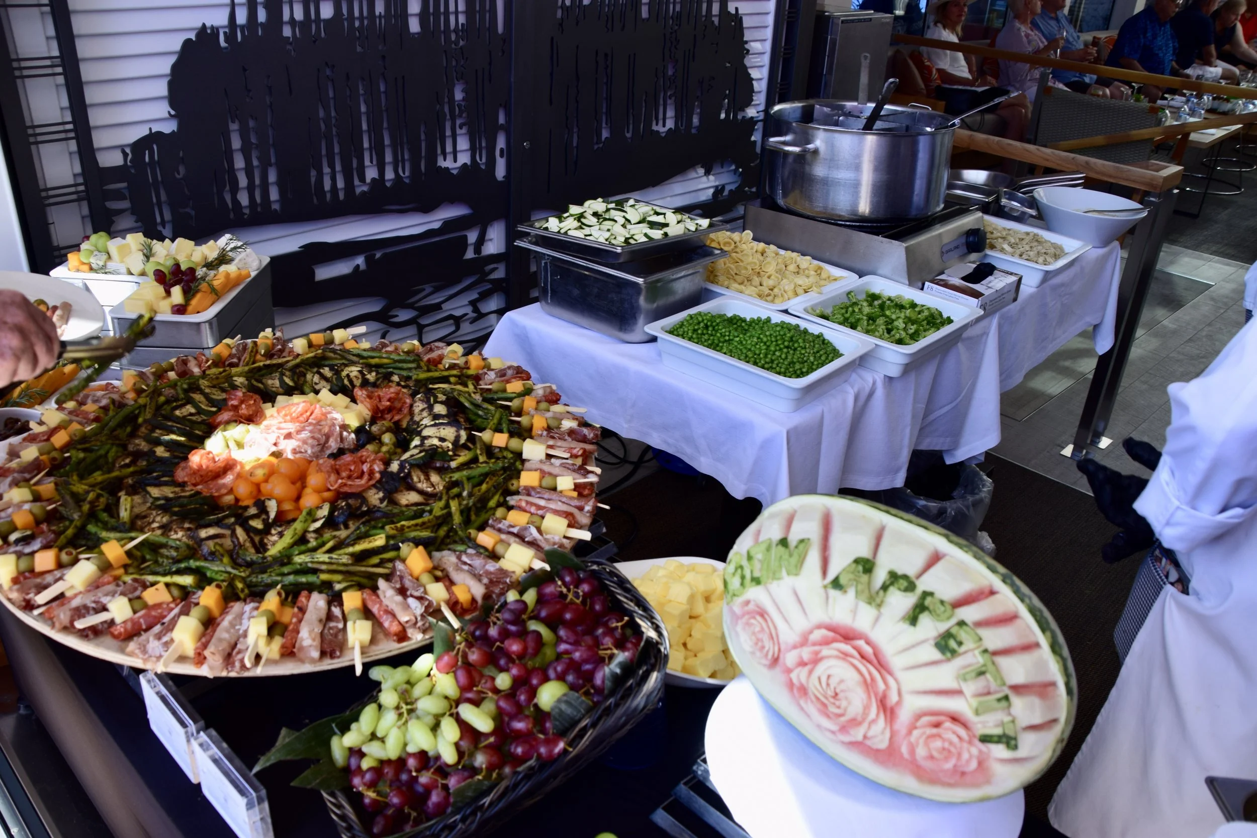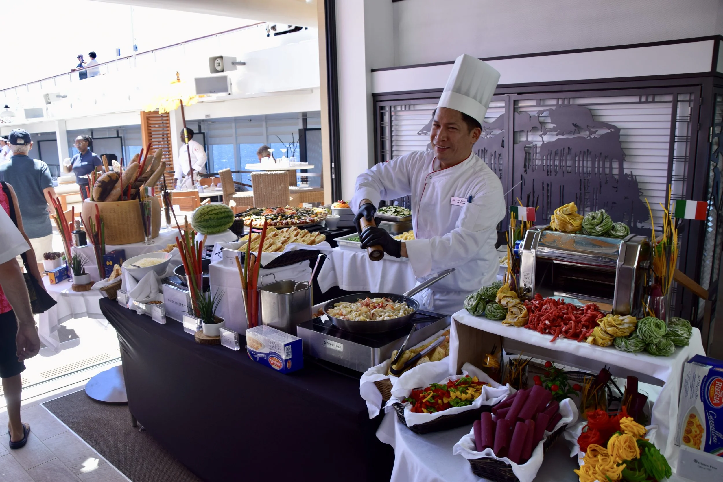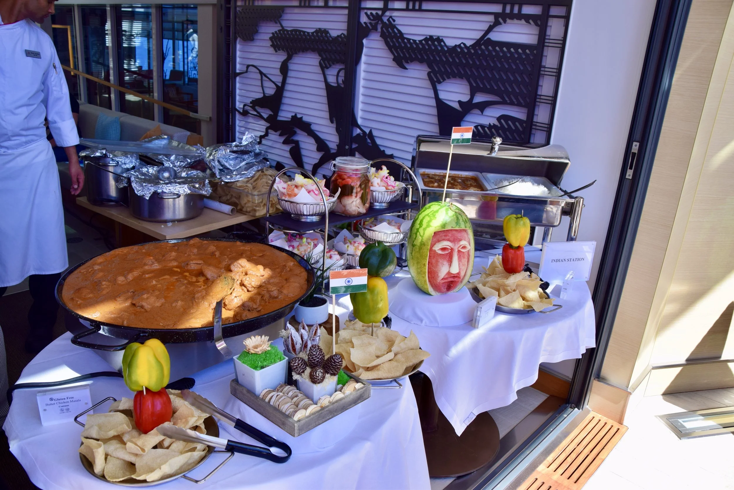 The culinary staff were quite proud of it, and rightly so. I had a few things, then went back for a few more. The Indonesian Street Food station was my favourite, with ground chicken and coconut formed onto skewers with satay sauce and some (forget the name) rice with a killer sambal sauce that was proper spicy. (If you read the previous line in a British accent, you won’t need the “ly” after “proper”)