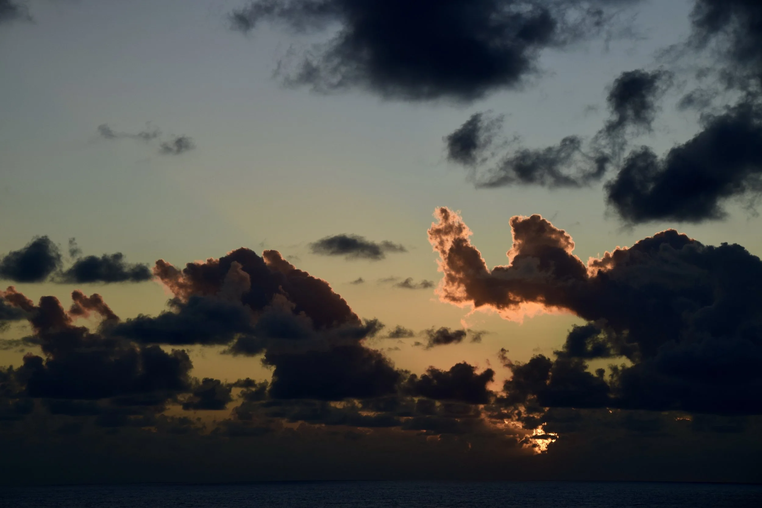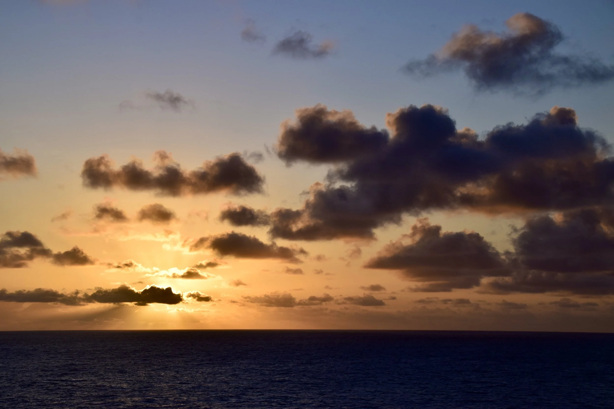 For the second day in a row, we had clear, blue skies during the day, but the sunset was hidden by clouds. Still pretty.