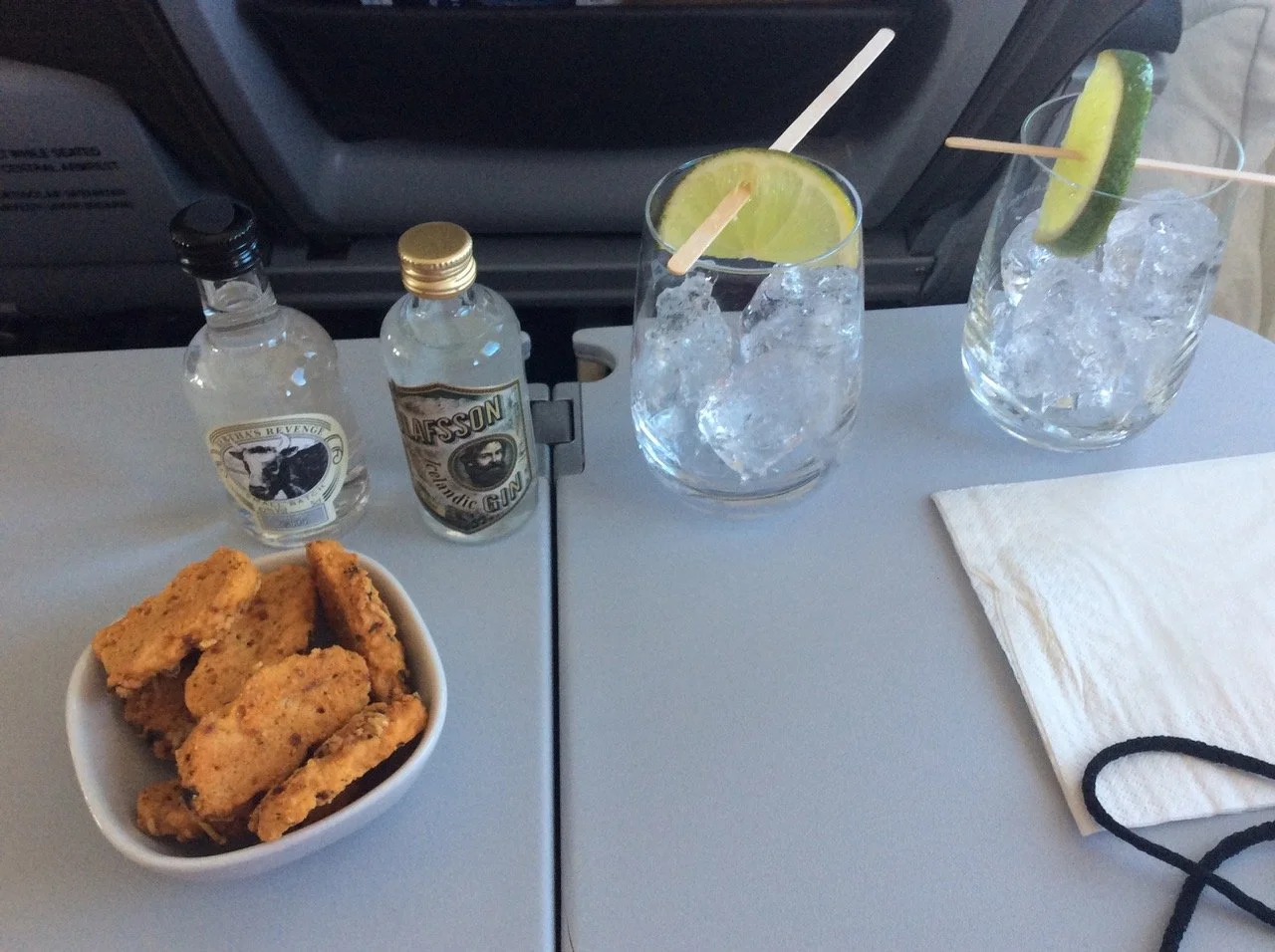 Icelanders love their gin - it’s not uncommon to find ten or more gins on a restaurant menu, but only two or three wines. The plane was no different. Seven gins, two red wines.