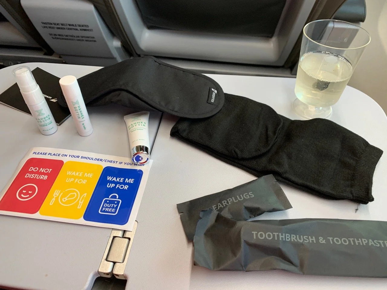 Icelandair provided a little swag bag of goodies - the best things were the stickers that you pop onto your shoulder to let the flight attendants know whether or not to wake you for food and beverages or duty free. That’s a great idea, since I’m always afraid I’ll miss the food cart if I should fall asleep.