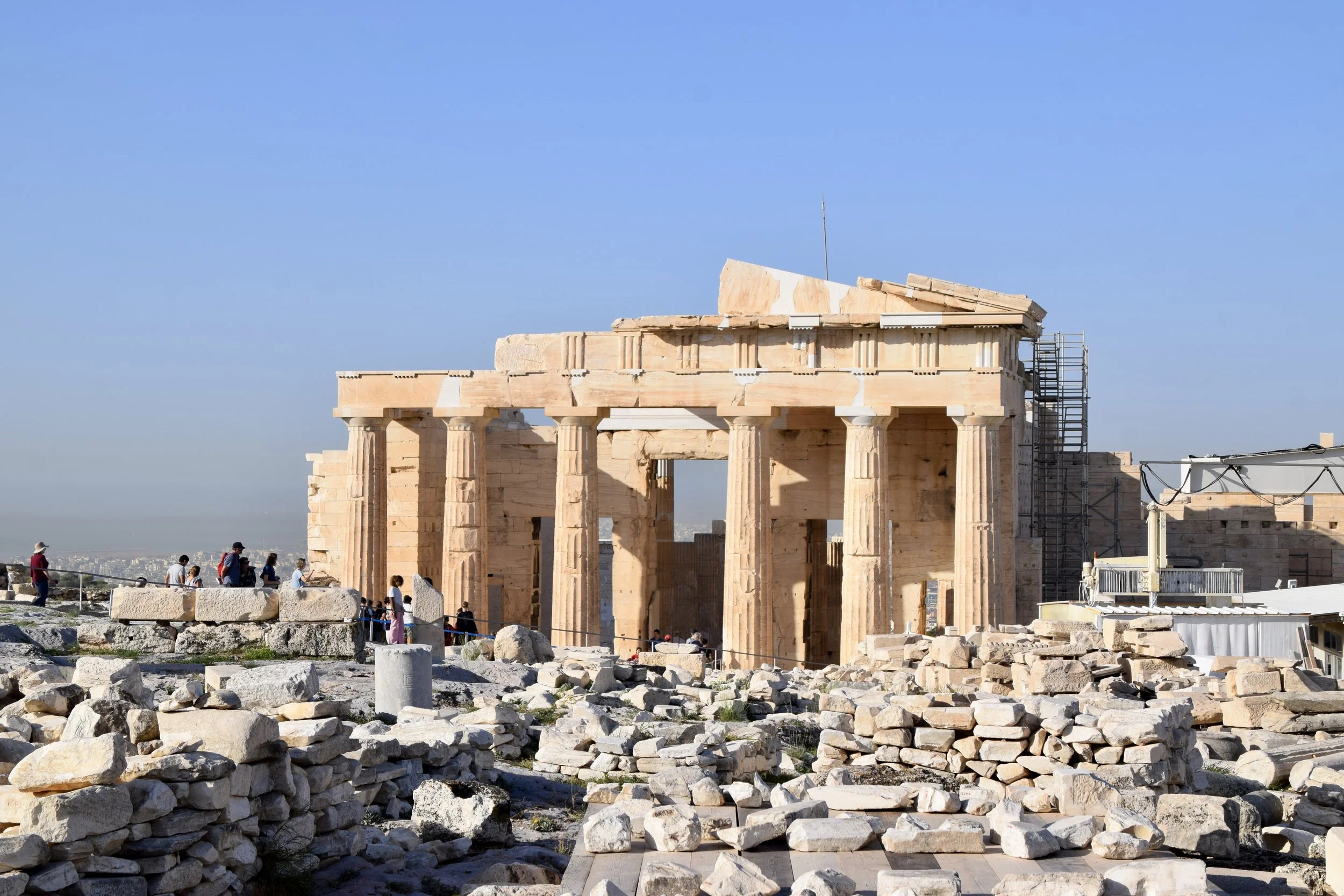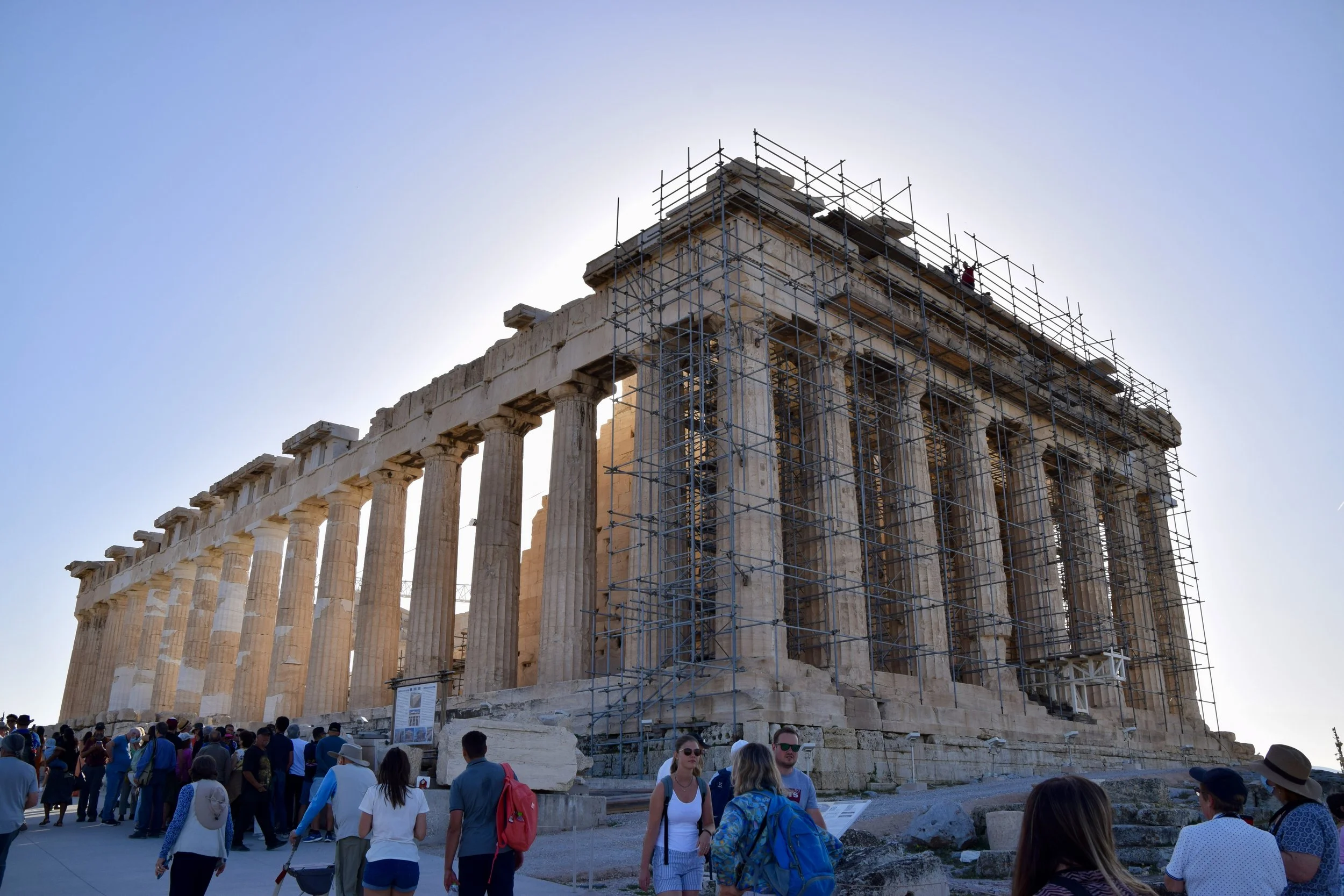 The largest and most famous is the Parthenon, which is being painstakingly restored as best as possible (notice the scaffolding). When I say “restored” I don’t mean that they’re going to put it back the way it was when it was new - rather, they’re gathering up all of the pieces they can find, figuring out where they go, then painstakingly reassembling them into the structure to restore it as much as possible.