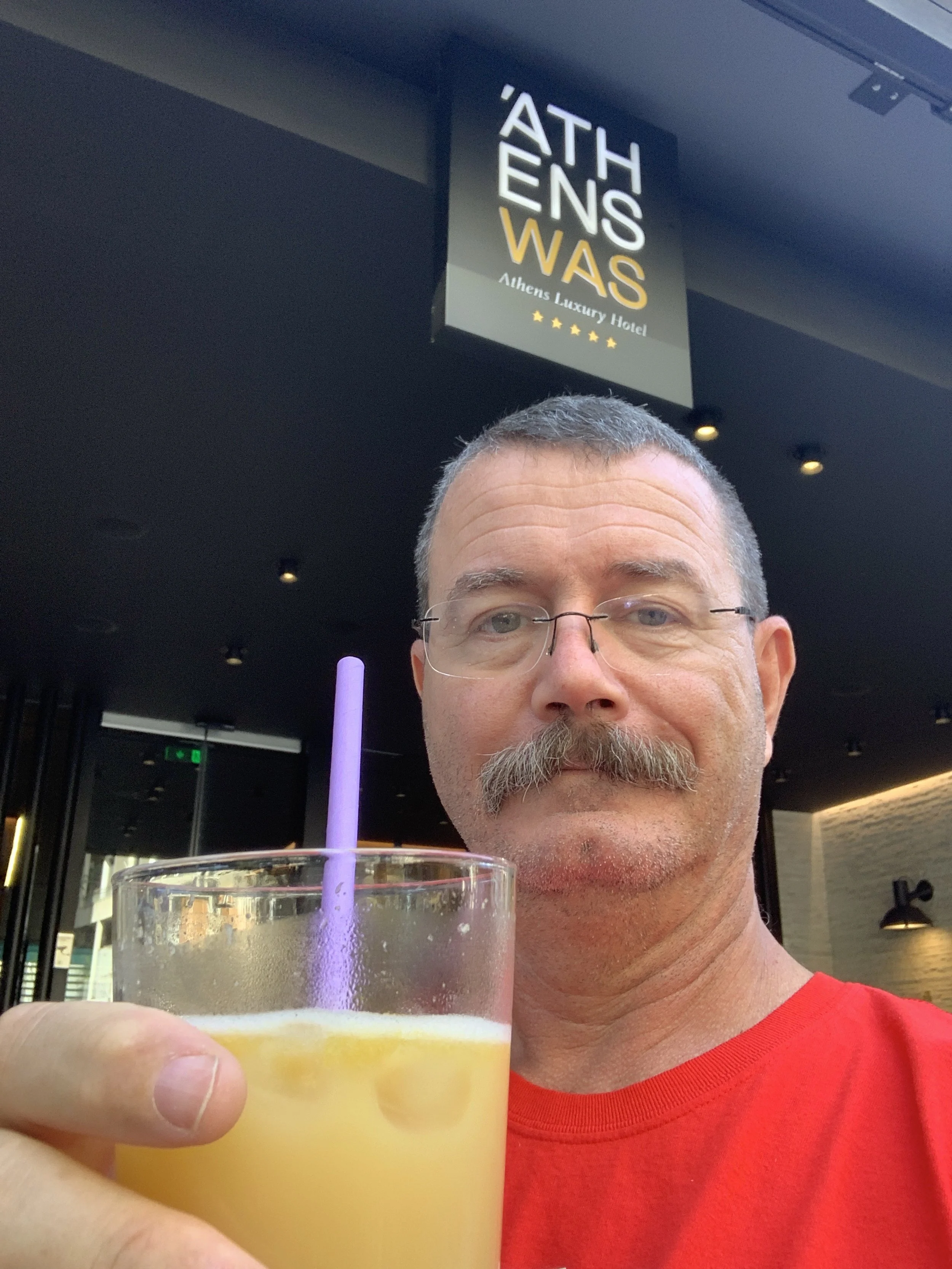 But it wasn’t really a sidewalk cafe - it was a sidewalk offshoot of the restaurant inside Athens WAS hotel. The lemonade was astonishingly good. I’m not normally a fan of lemonade, because most people make it way too sweet. This wasn’t. It was almost savoury, in fact. It was so good that we even looked up the restaurant… turns out, it’s got two Michelin stars! Who knew?