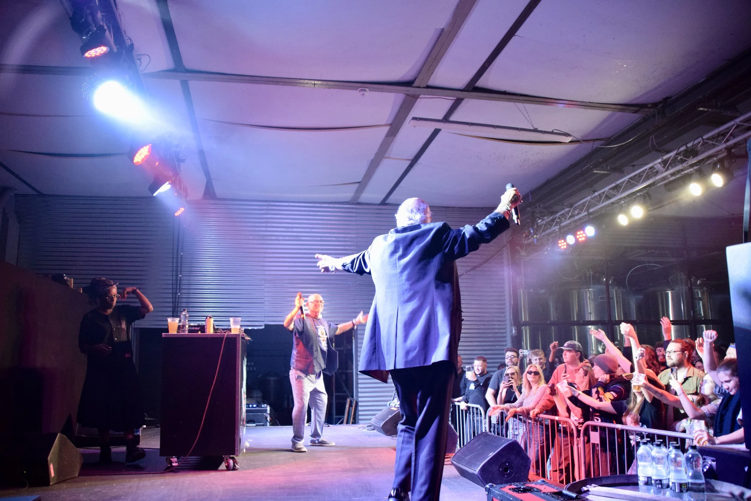 And then Pete told the crowd, “he’s written a song about us and it’s amazing and you should all go to YouTube and watch it” - WOW. That sucker-punched me right in the feels. Before I could even think about tearing up in front of all those people, though, Bas hands me a beer and Pete hands me a mic. “Bish Bash Bosh” starts up again and I know what’s about to happen. Holy shit. The timid guy who was embarrassed at having his name chanted by the crowd, the one who was about to get emotional when Pete lauded his song to the crowd, disappeared. Their music affects me in a lot of ways and apparently one of those ways is to get me out of my shell and just give’r. I figured that I’ve sung this song in the car a thousand times, I can do it here, too. Neither the crowd nor Pete and Bas were expecting what they saw and heard, as is evidenced by Bas’ face.