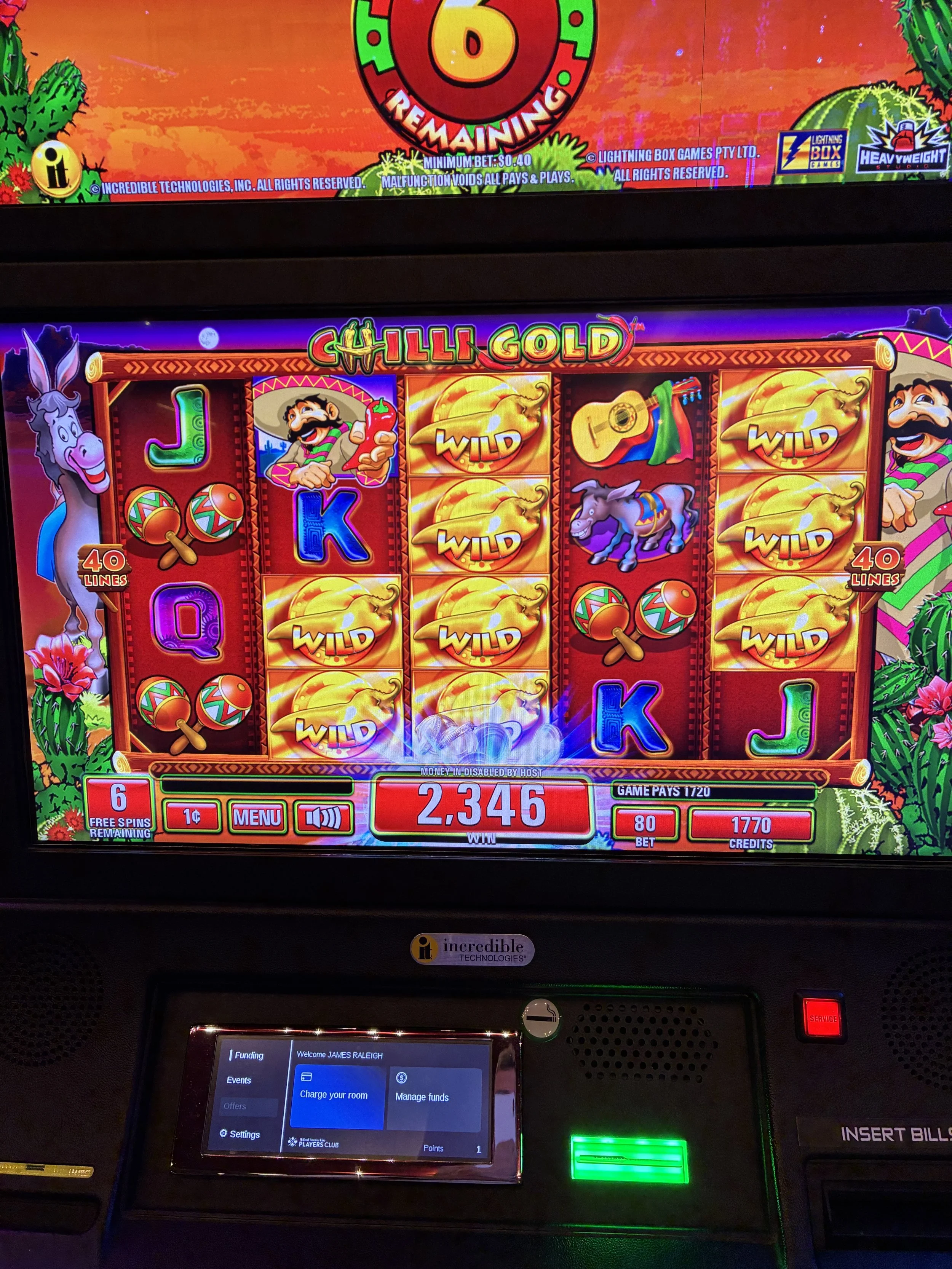 Naps happened after that and it was nice. Basically had a lazy afternoon before meeting up with everyone for drinks before dinner, and I decided to try the slot machines in the casino. I found one with a chilli pepper theme.