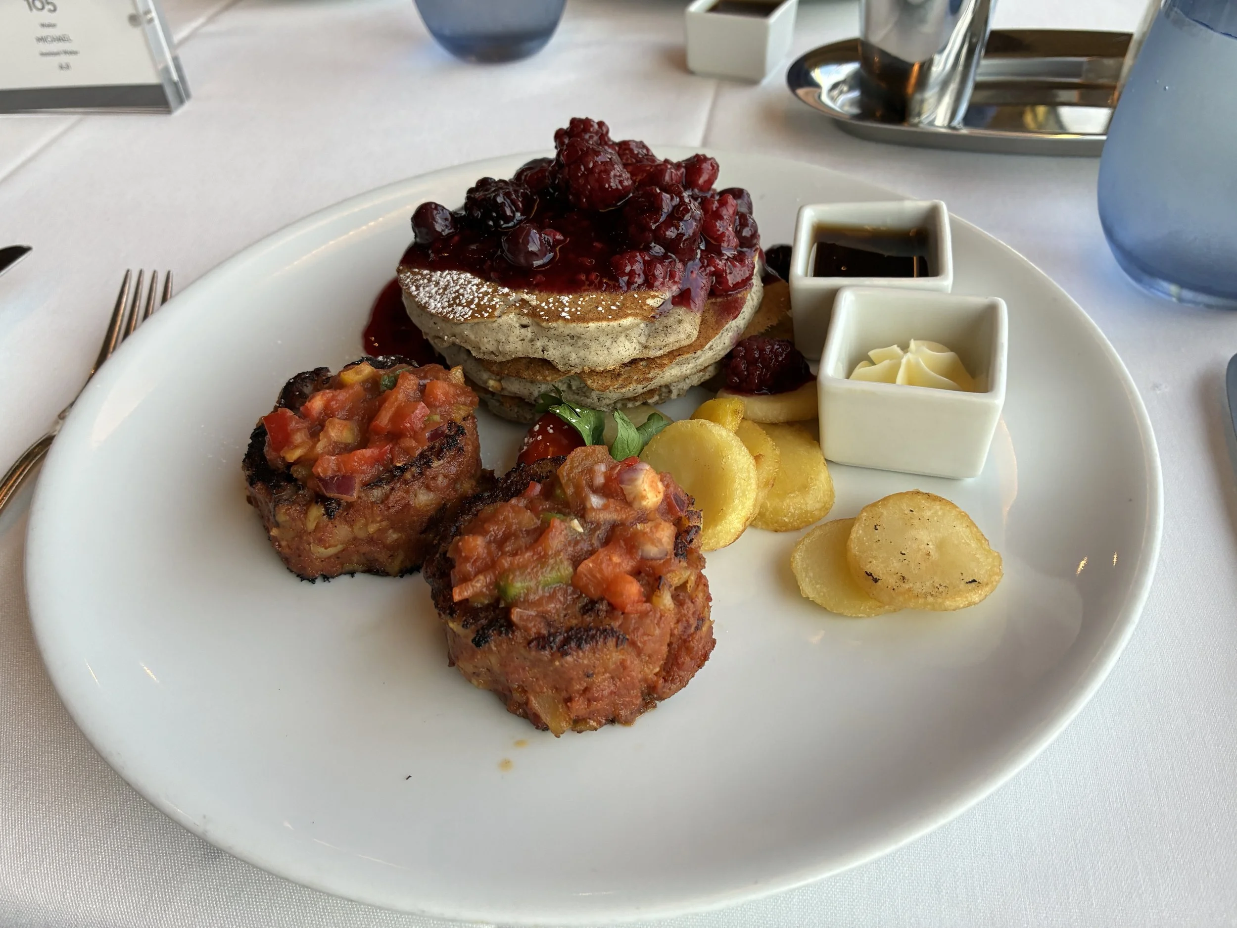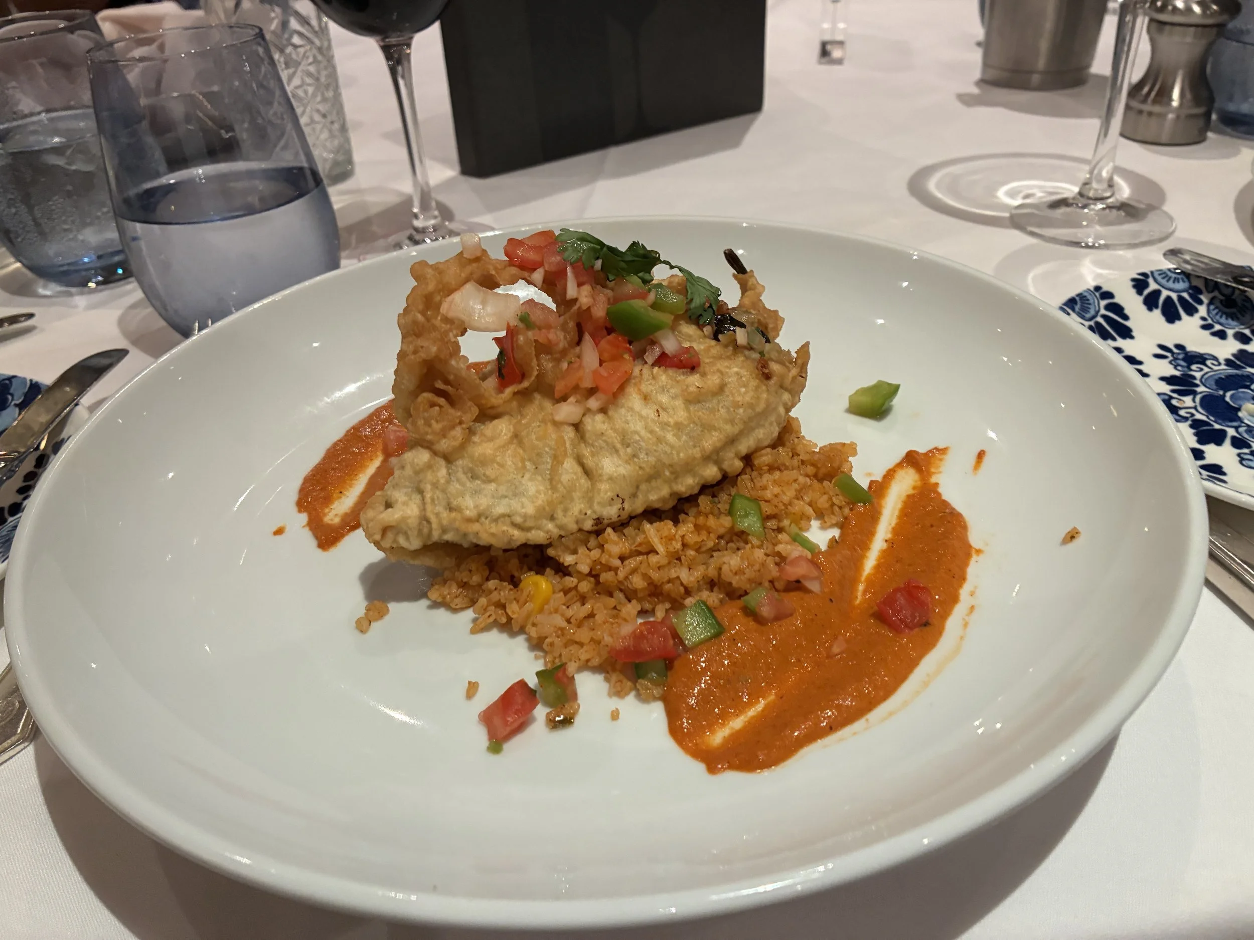 The cream broth these were swimming in was delicious and I could’ve just had that as a soup. Followed this with a bit of a risk - I ordered a Chile relleno. That’s a large poblano pepper stuffed with cheese, then battered and fried. Considering I grew up in Texas, the odds of getting a decent Chile relleno on a cruise ship in northeast Canada were pretty slim… but it might be the best Chile relleno I’ve ever had. It was also surprisingly spicy, which is never a bad surprise for me.