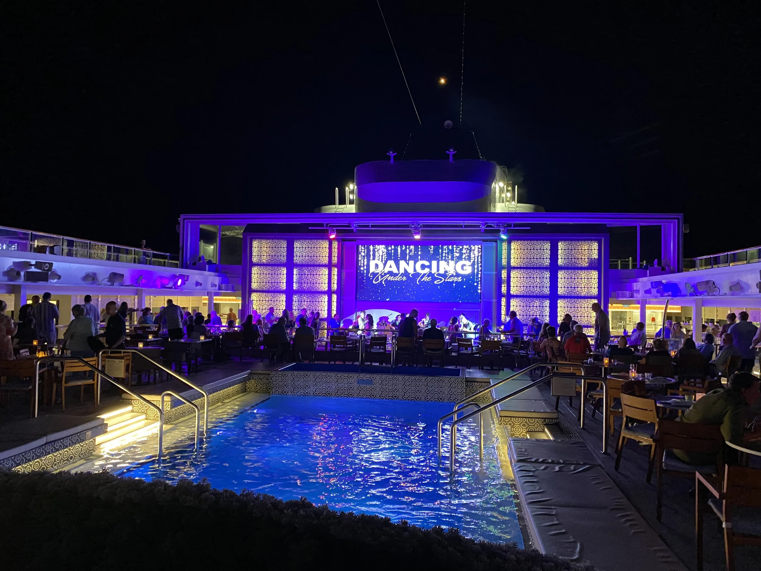 The evening’s entertainment wasn’t a concert, but a dance party by the pool. We decided to pass.