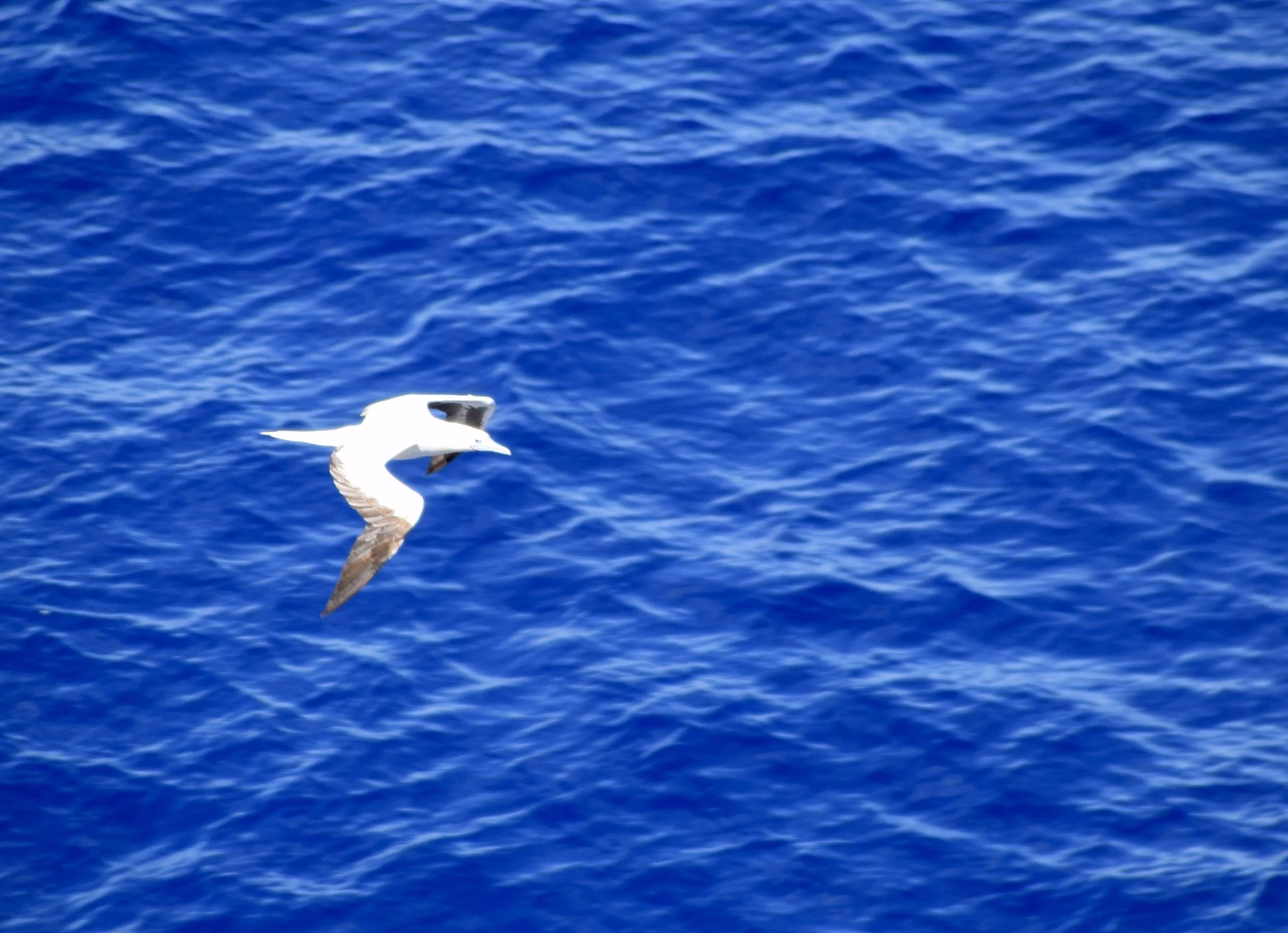 There have been red-footed booby birds (I’m not making that up) hanging out around the ship. I tried to get some shots, but they usually tuck their feet in pretty tight while they’re flying. They hang out looking to feed on the flying fish that the ship disturb as it plows through the water. I still haven’t seen the flying fish on this trip (although I’ve seen them on other cruises).