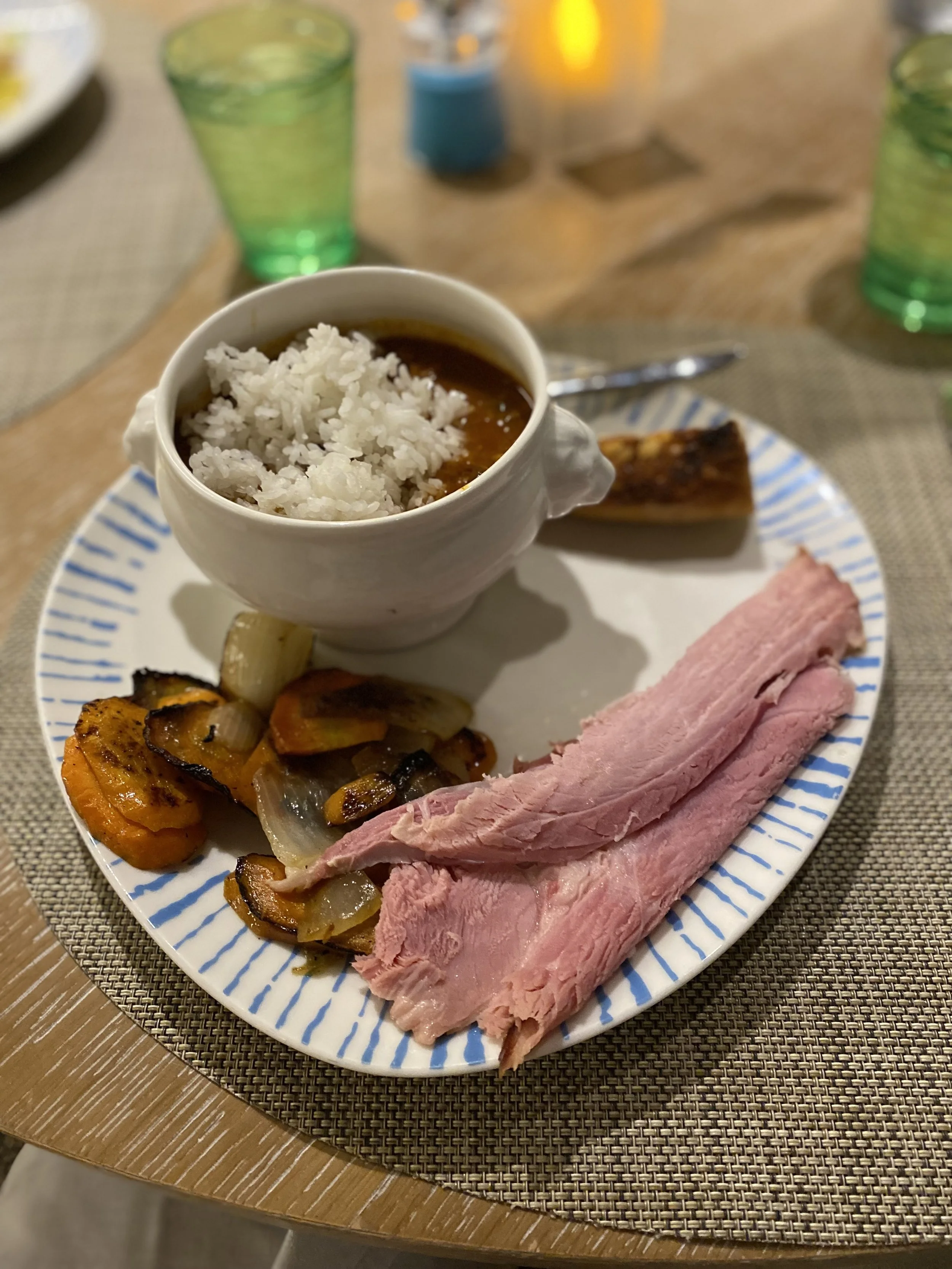 There was a nice Virginia ham on the dinner buffet, but the star of the show (for me anyway) was the bowl of seafood gumbo. I was skeptical, being out in the middle of the Indian Ocean, thousands of miles from New Orleans, but it was actually really good!