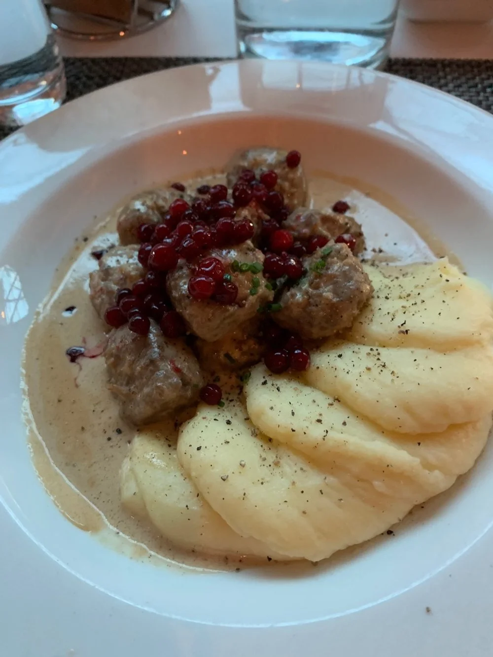 We ate at the hotel restaurant for dinner (all the restaurants around the hotel are fast food) and had some delicious Swedish meatballs with fresh lingonberries.