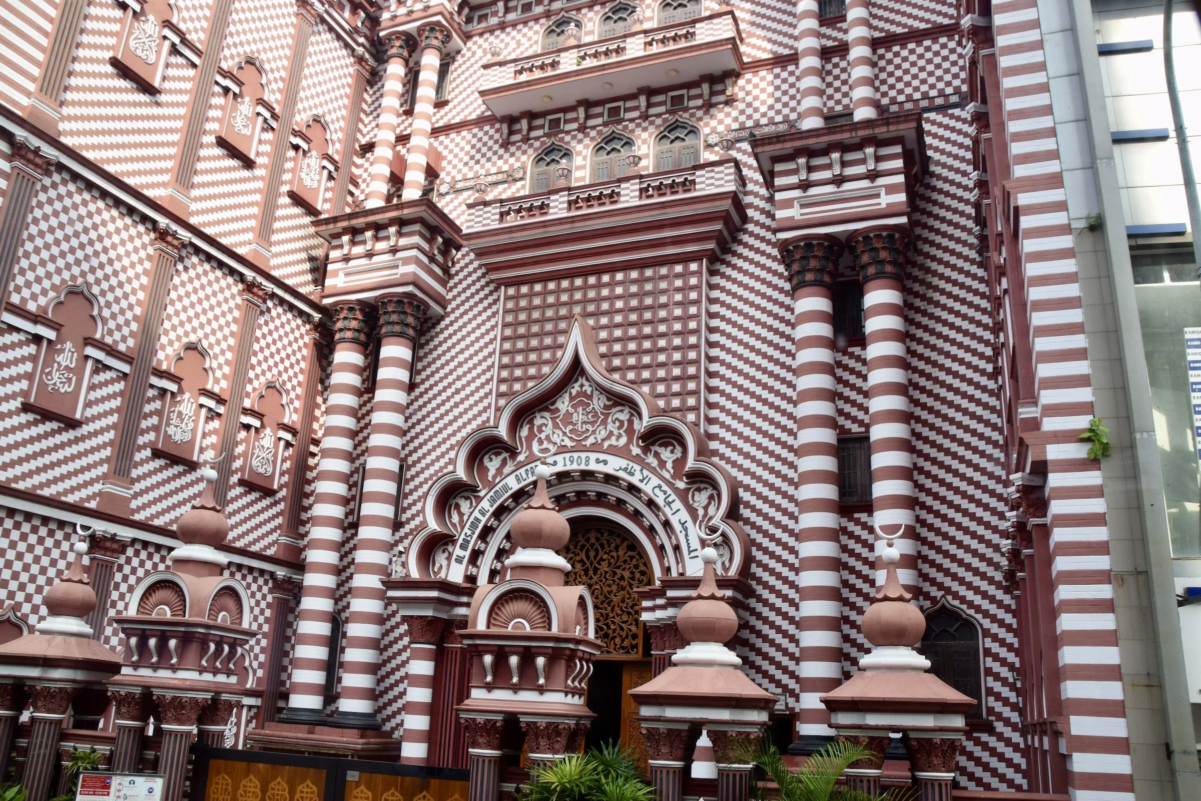 Sri Lanka has temples, mosques, and churches in abundance. We passed a few Christian churches, which were modest in size. The mosques were more elaborate, such as the Jami-Ul-Alfar Mosque Sinhala, or “Red Mosque.”