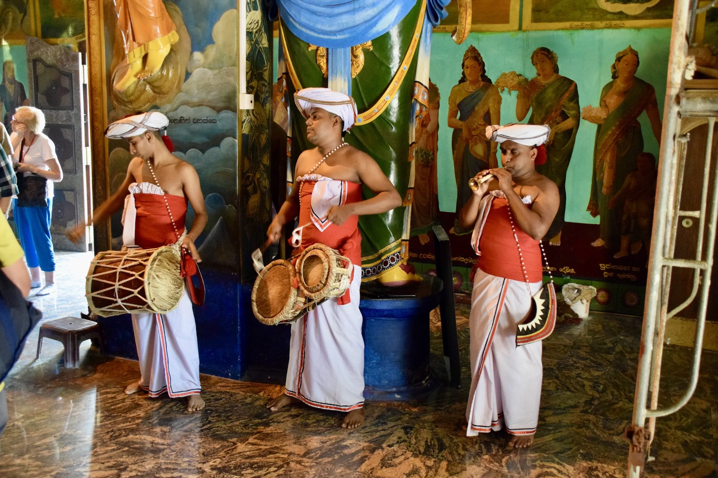 This temple is home to many Buddhist monks and per tradition, they only eat their meals between sunup and noon. Thus, a few minutes before noon, a loud… a very loud drumming/musical ‘chant’ blasts out to let the monks know that they should eat now, lest they will have to wait until tomorrow. The drums are very potent and the instrument played is a nadaswaram. It’s a double-reed instrument like an oboe and it sounds quite similar to an oboe merged with a bagpipe, but without the drone. Scratch that. It sounds like an oboe merged with a bagpipe hooked to a bank of amplifiers meant for a concert at Wimbley Stadium. That little woodwind has unbelievable power. Both instruments are intended to be played outside in the open as a means to get their message out to everyone in the area. We were treated to it inside the temple.