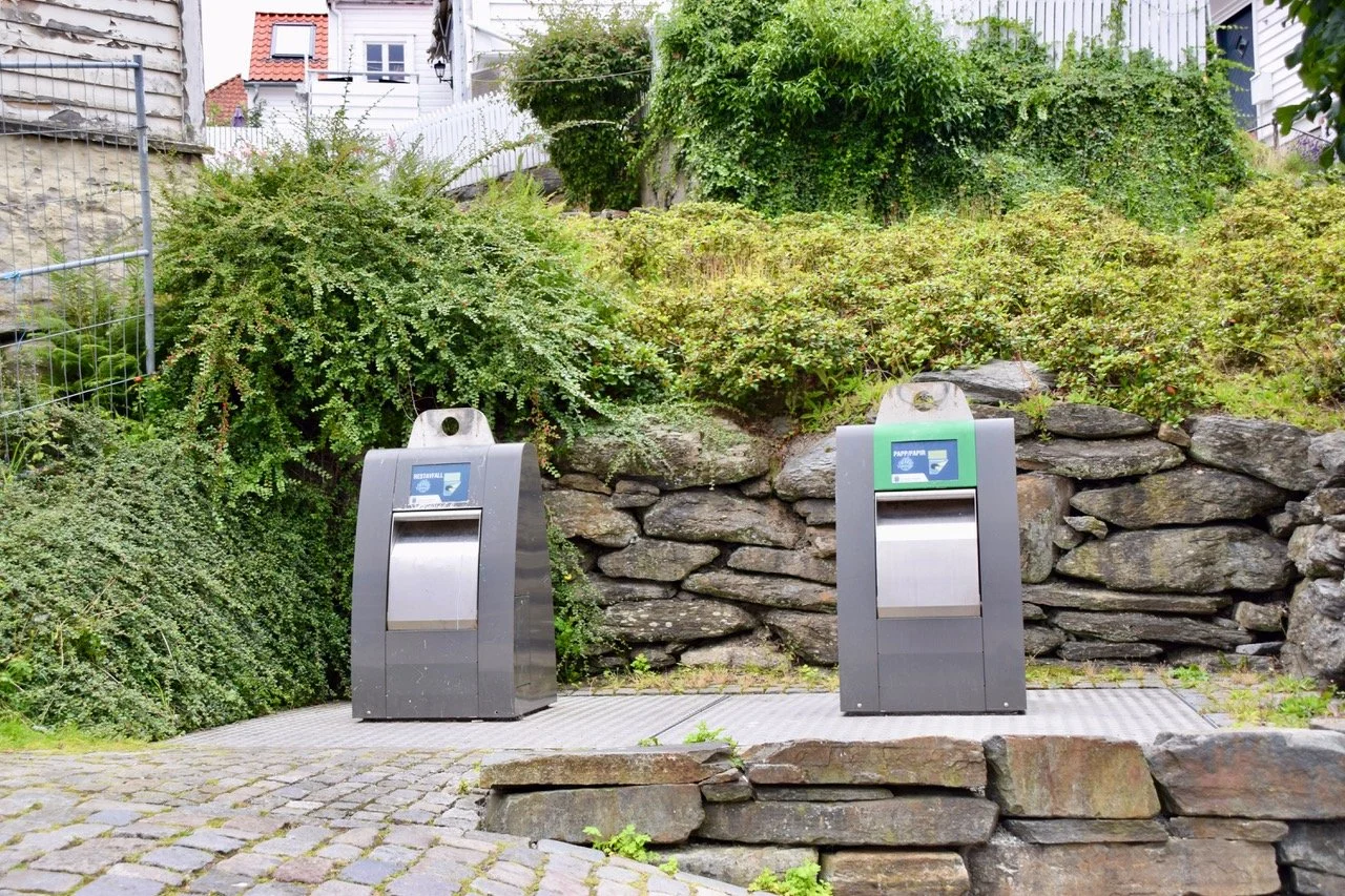 We’ve seen these around Norway and I never really gave them much thought… but they’re interesting because they have solar panels on the back that compress the recycling so they don’t have to be emptied as often. That’s nice, but that’s not the interesting thing. That comes when they get emptied.