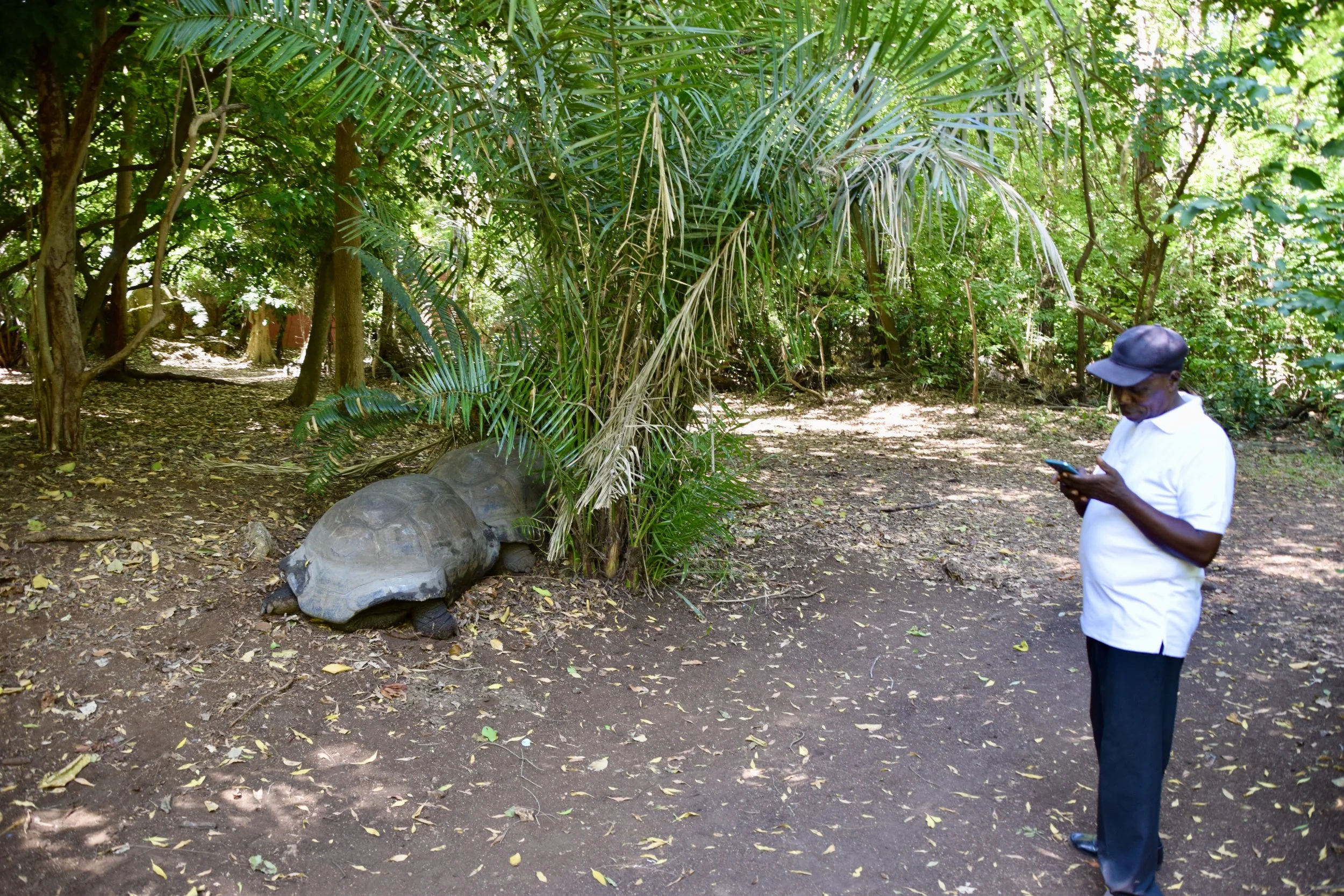 We visited a reptile house with lots of snakes, then saw two giant tortoises hanging out along one of the paths.