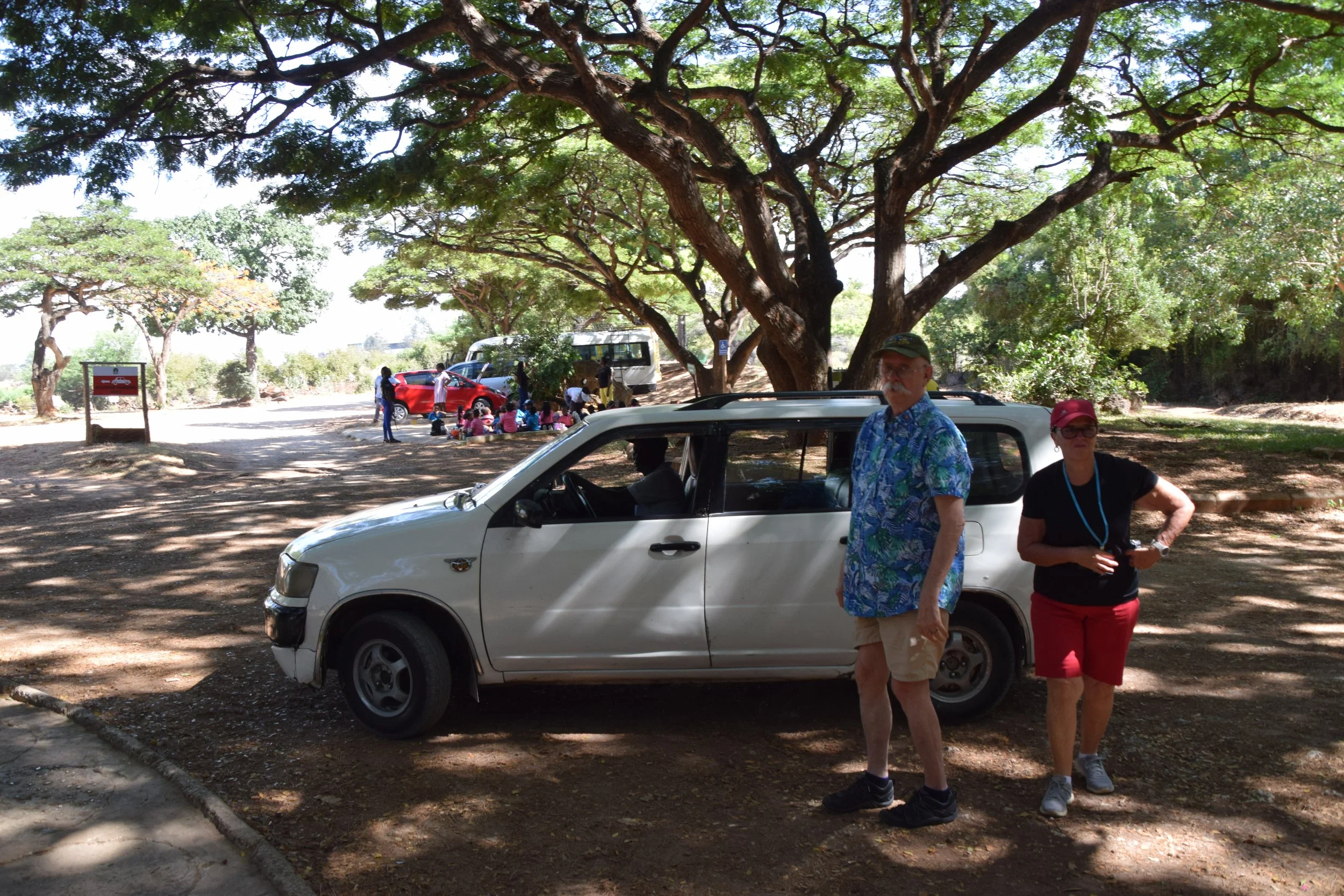 After a brief chat with Aussie besties Doug and Heather this morning, Doug and I went down to the dock to see what sort of mischief we could get ourselves into on our extra day. We (and by “we” I mean Doug) negotiated a reasonable price for a driver to take the four of us to Haller Park, wait for us there while we looked around, then back to the ship. Nice! And if you’re wondering, after seeing the other pics of Kenya, what a hired car might look like here was ours…